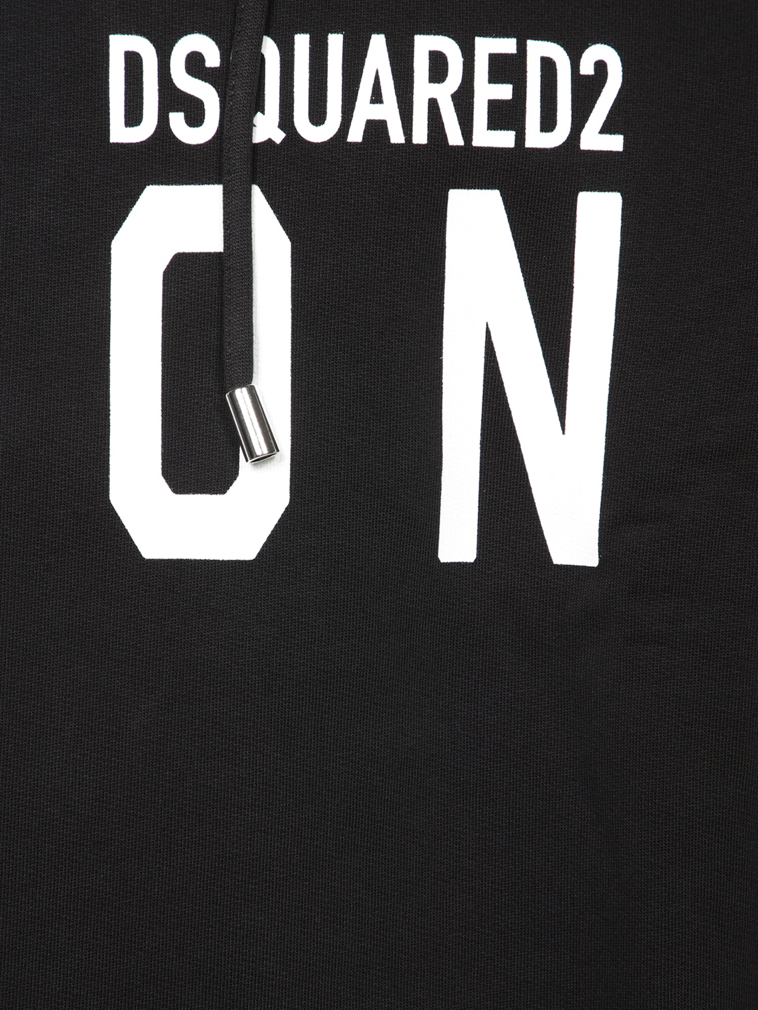 This exclusive Dsquared2 black hoodie features a contrasting ICON logo on the front, offering a bold and modern design while keeping you warm and stylish.