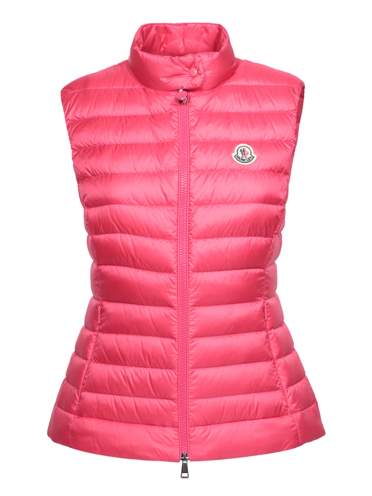 A distinctive piece by Moncler, the coral IGENS vest elevates any outfit with its vibrant hue and padded design ensuring warmth without sacrificing style.