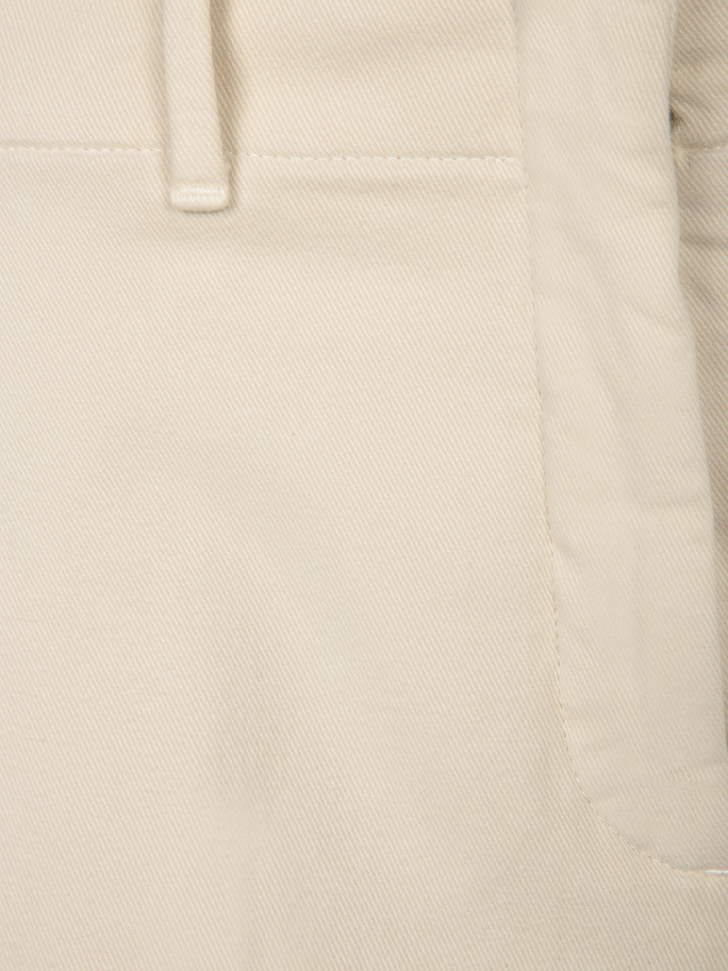 Solid beige wide-leg trousers. Features belt loops, side pockets, and a front zip and button closure.
