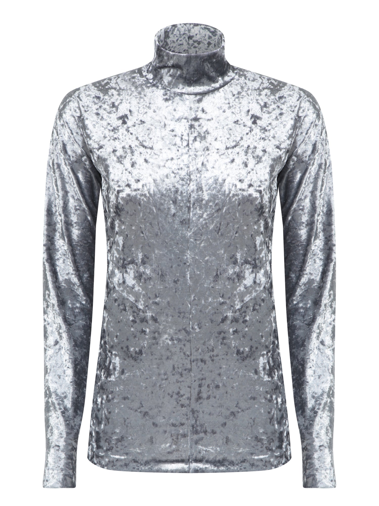 Long sleeve T-shirt. High collar. Iridescent velvet fabric.