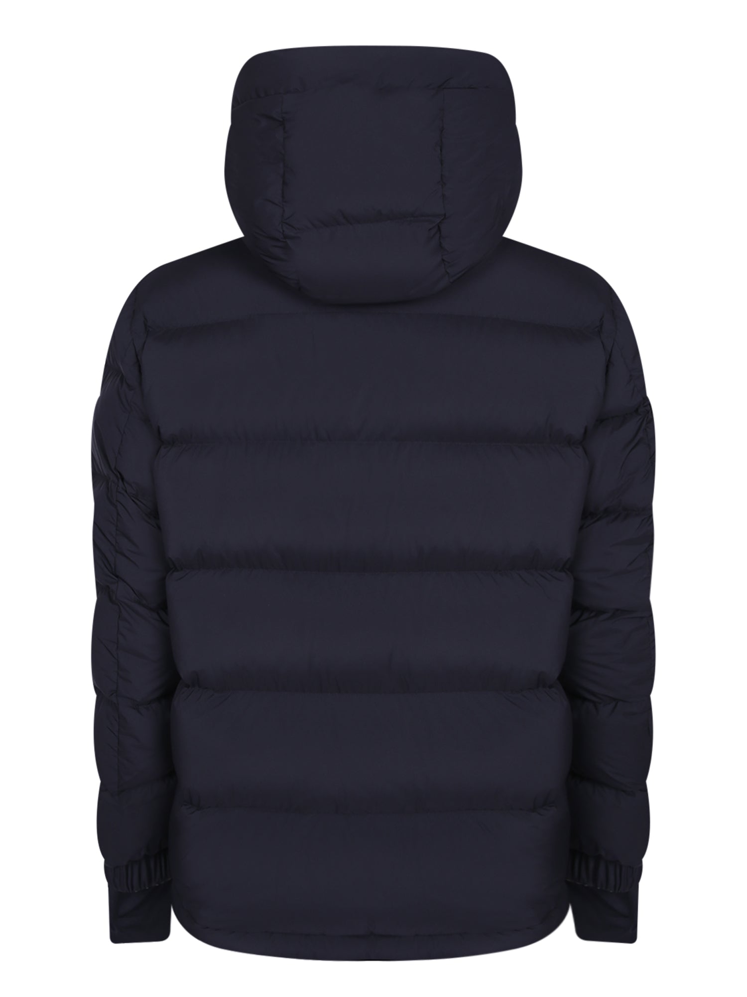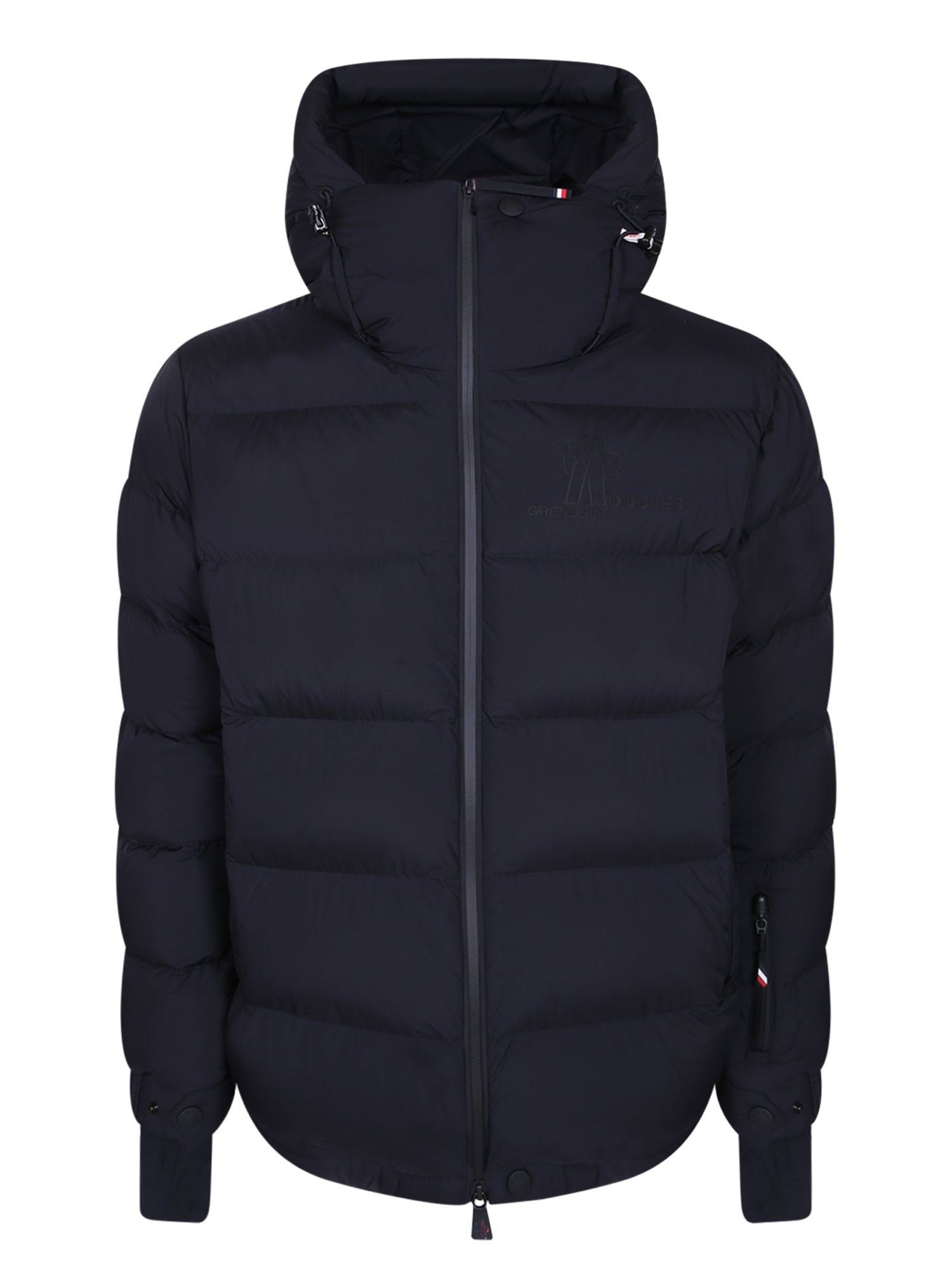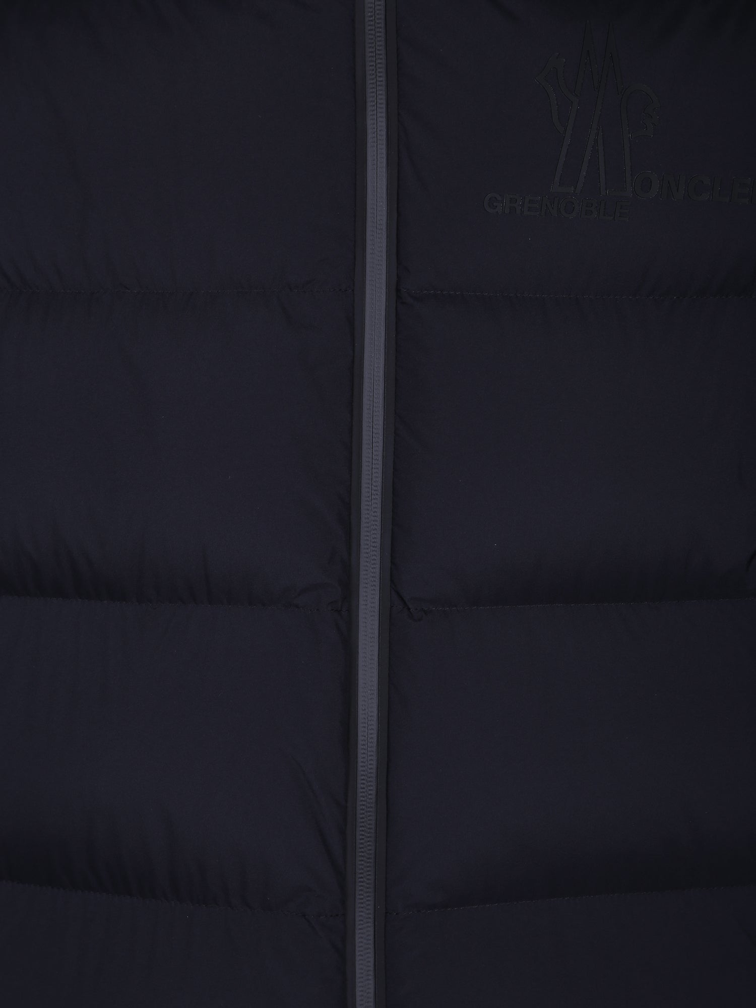 Padded down jacket with hood, front zip closure, side zip pockets. Moncler Grenoble logo on the left sleeve.