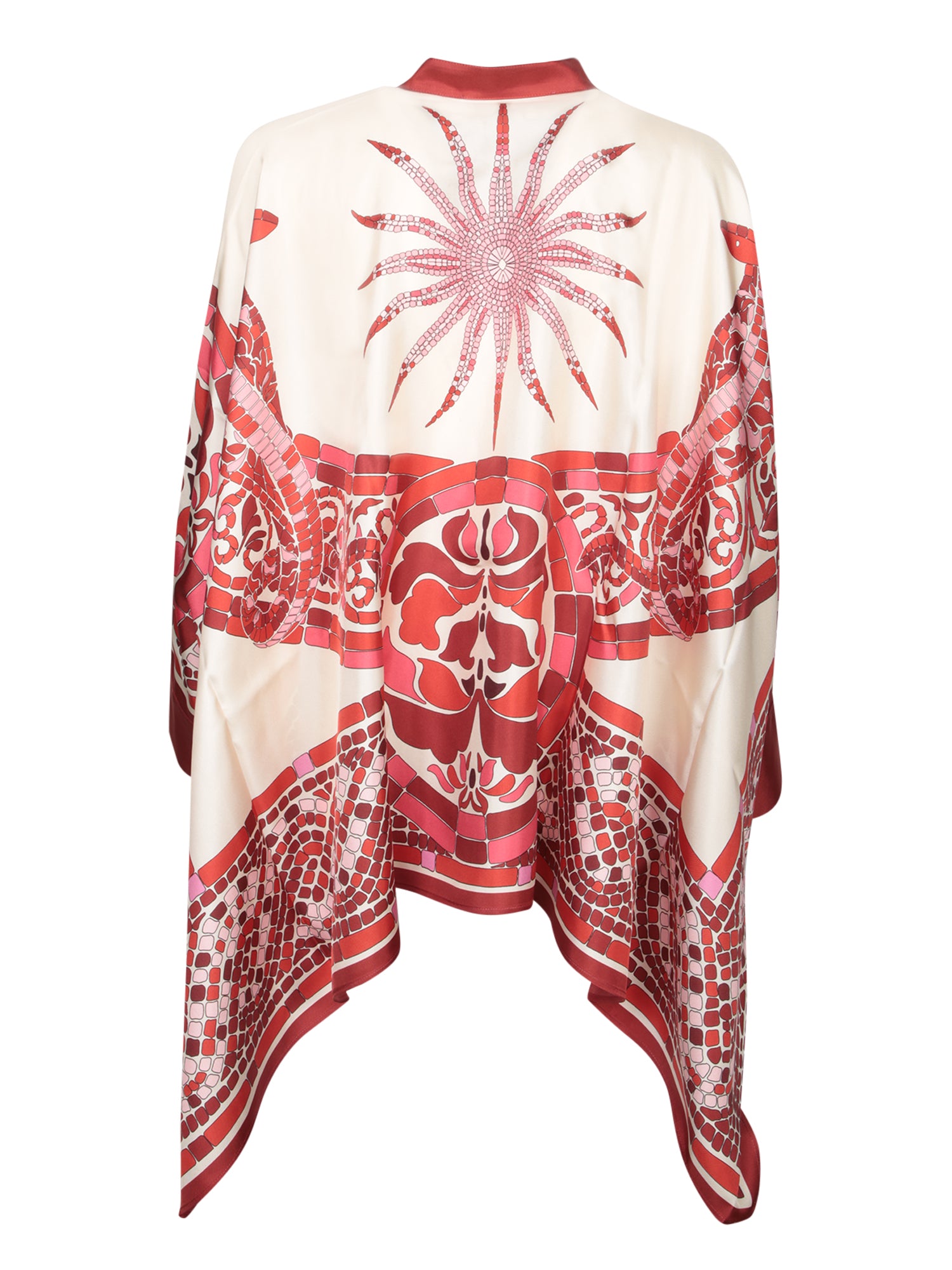 This elegant silk shirt from La Double J features a bold mosaic motif in shades of ivory and red, highlighted by an asymmetrical cut that adds a touch of originality and modernity to the traditional design.