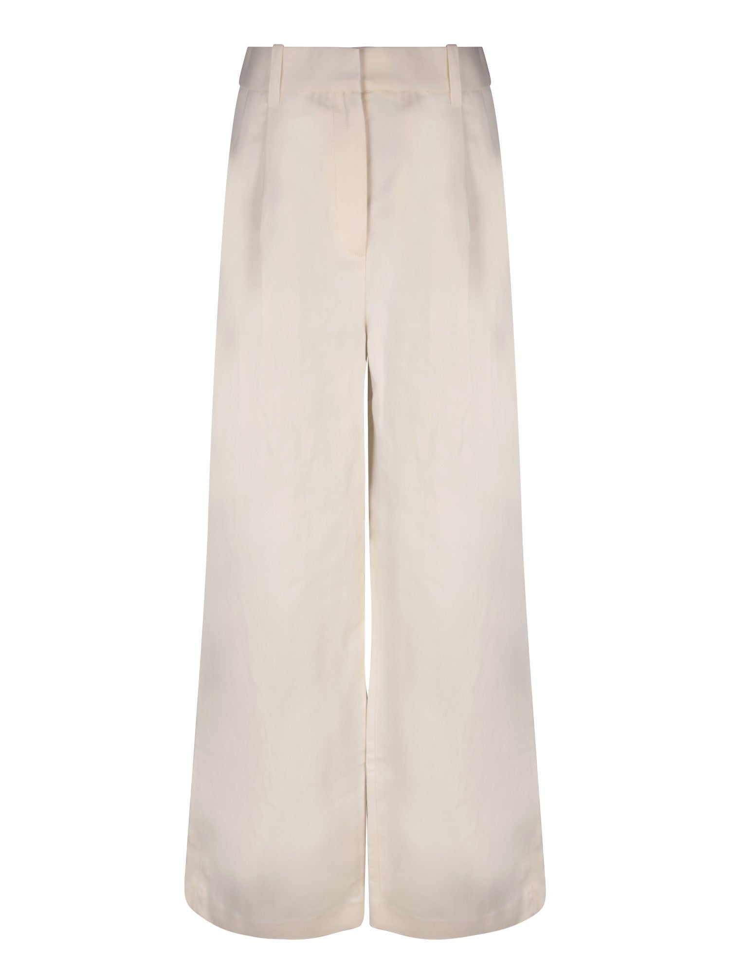 Wide-leg trousers. High waist with side invisible zip closure. Welt pockets at the back.