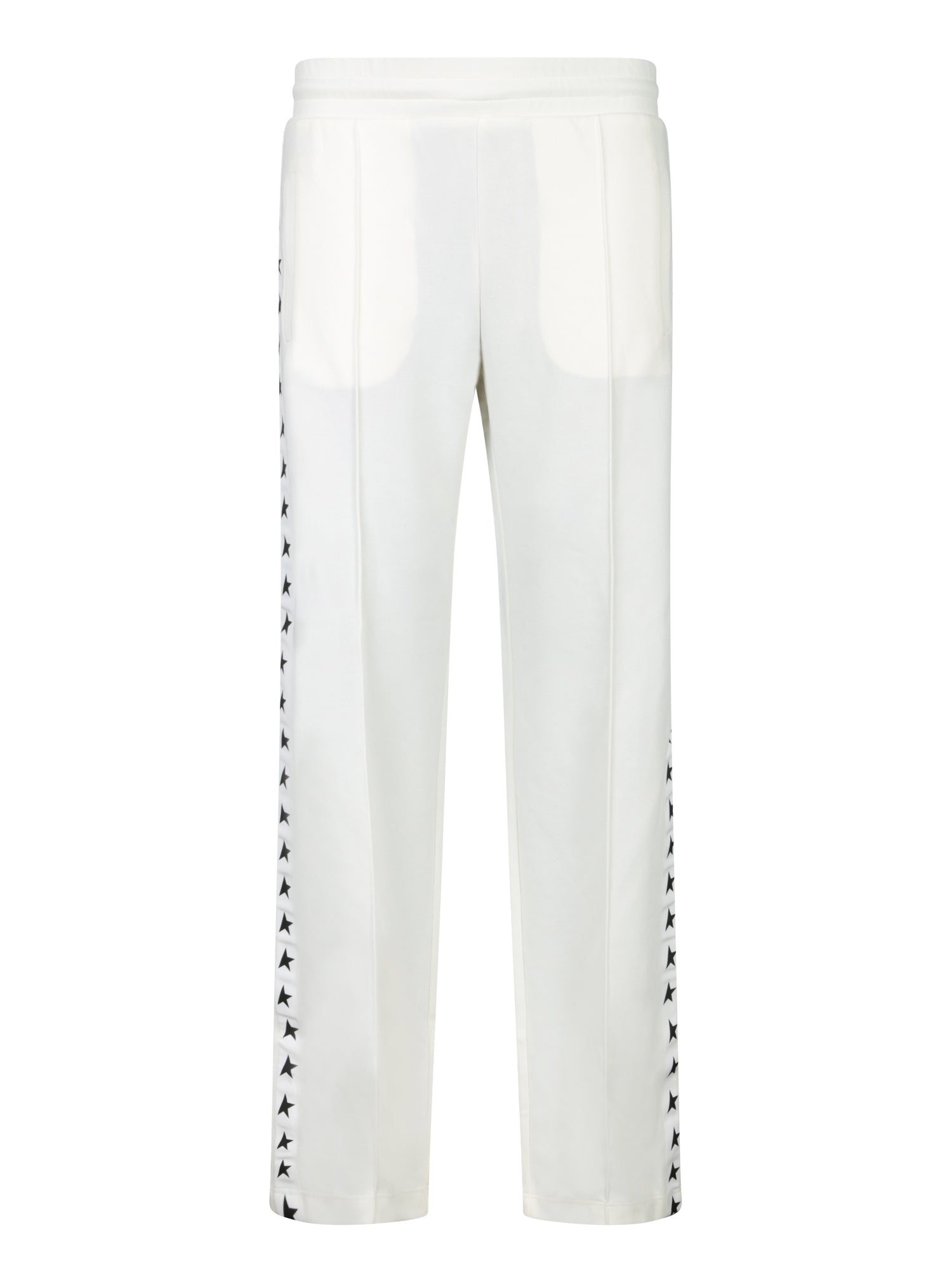 Jogging pants in technical fabric. Elastic waist with drawstring. Side band with black stars.