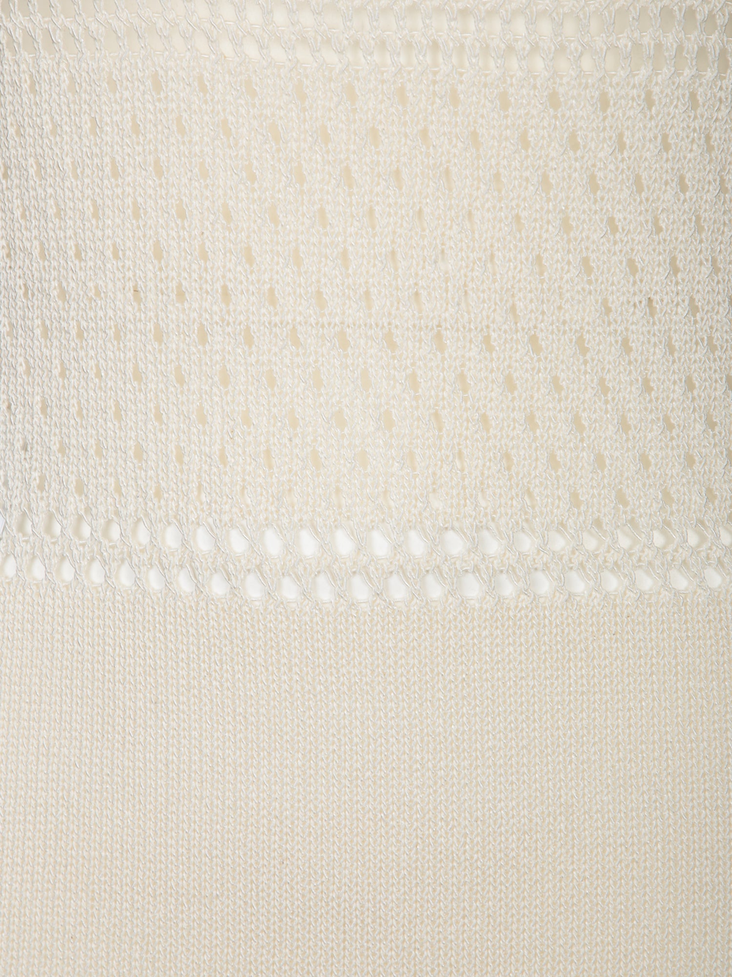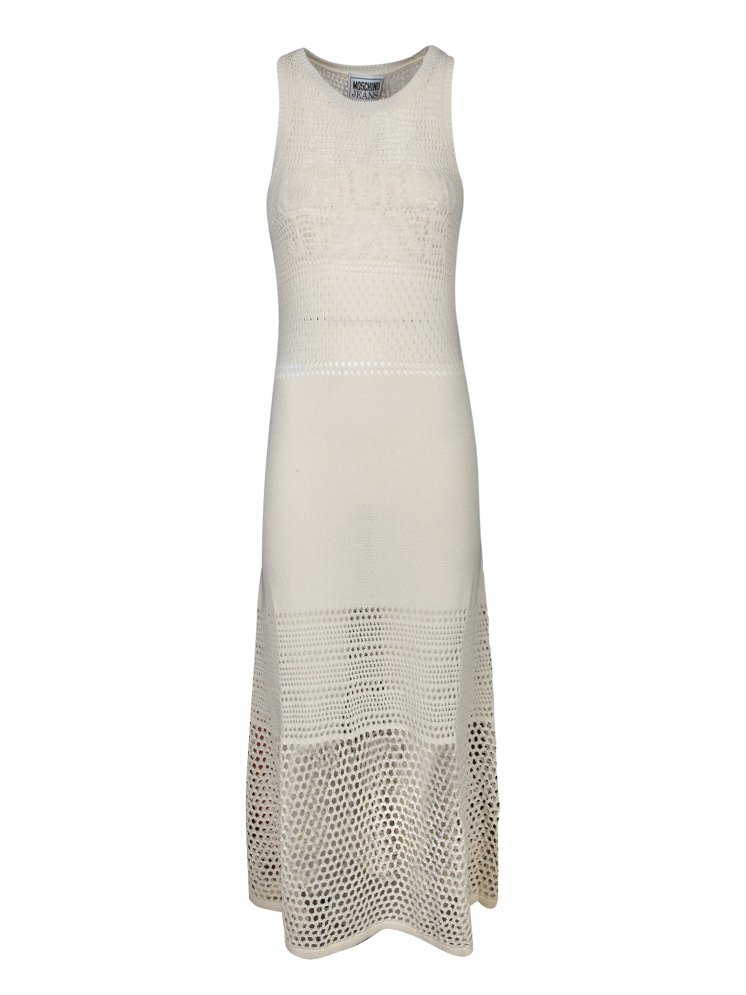 This elegant MOSCHINO JEANS dress stands out with its bold and modern design. It features a sleek silhouette made of mesh with a gradient transparency that offers an intriguing peek-a-boo effect, perfect for exclusive evenings.