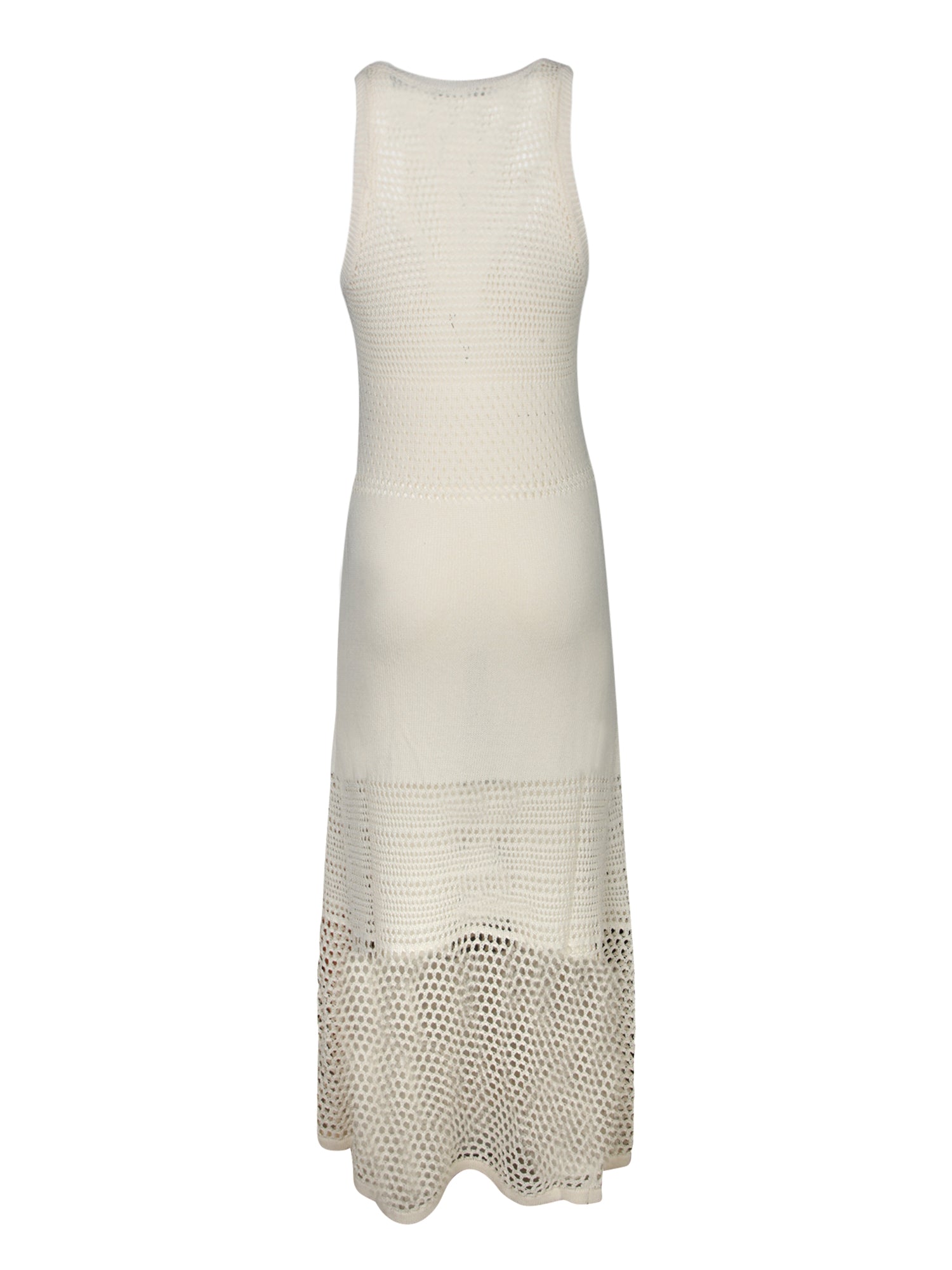 Sleeveless long dress. Mesh fabric with integrated logo. Gradient transparency along the dress.