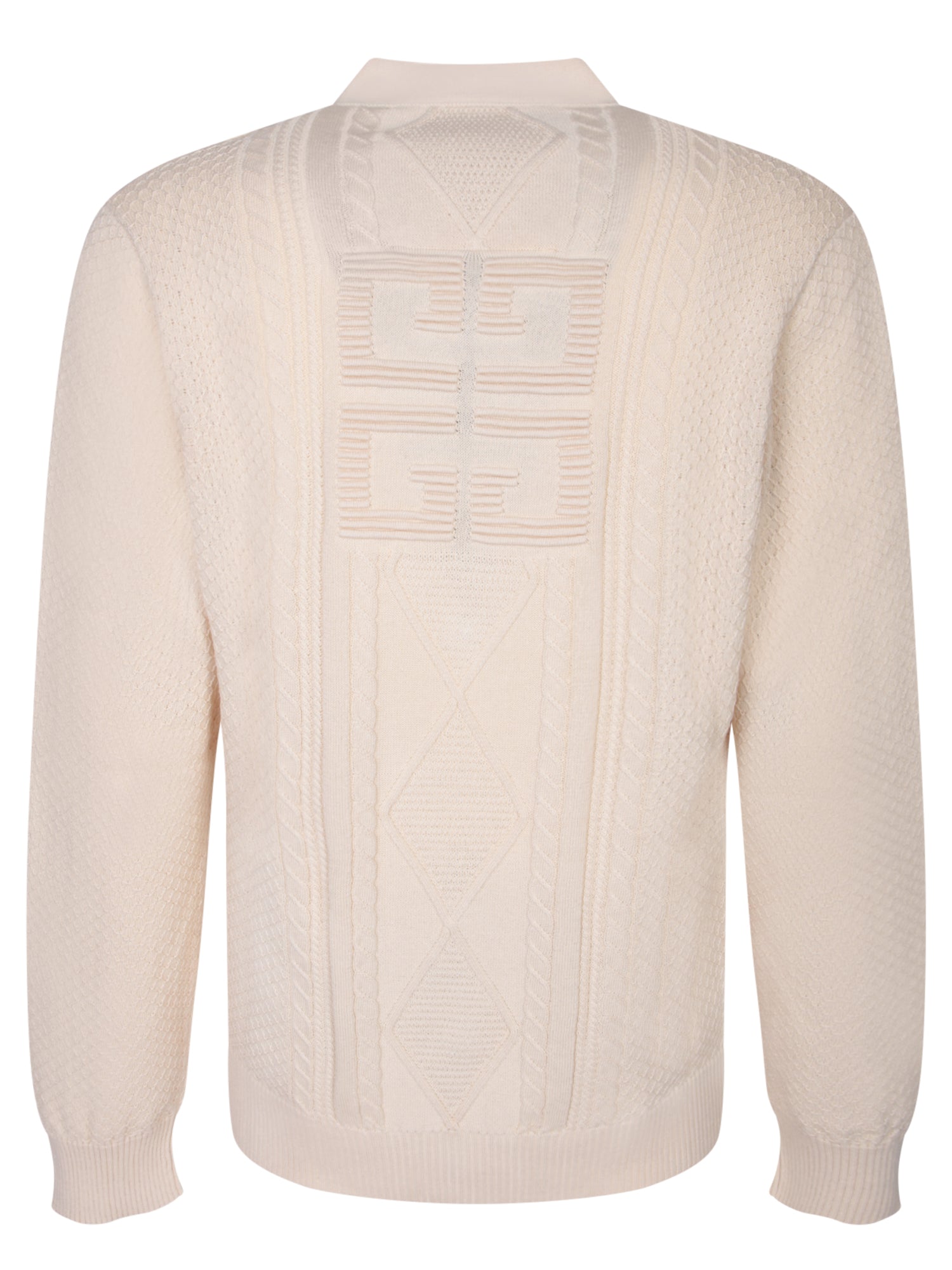 From GIVENCHY, this ivory cardigan stands out for its sophisticated design with a V neckline and unique fabric details. The applied pockets add a practical and stylish touch.
