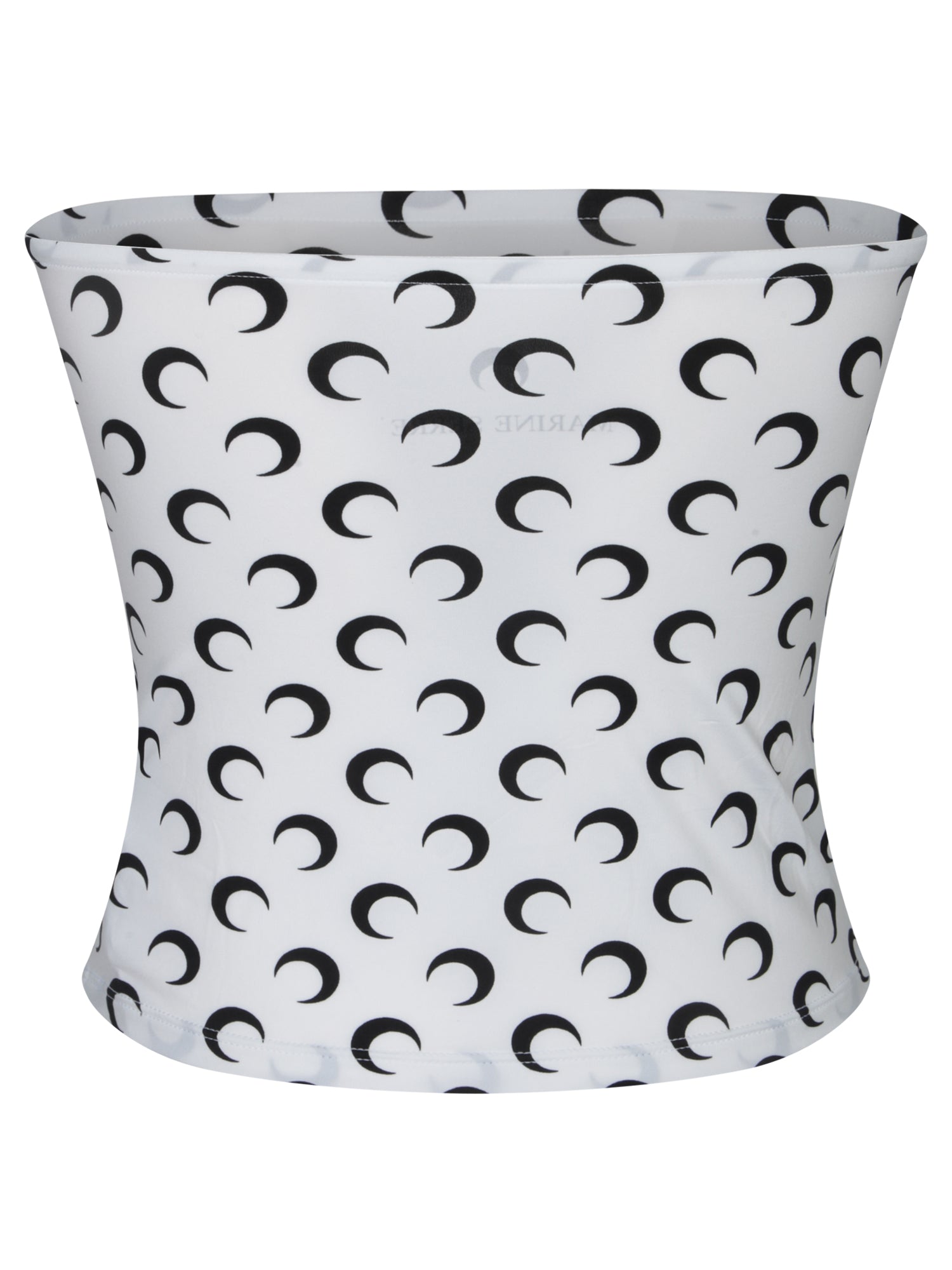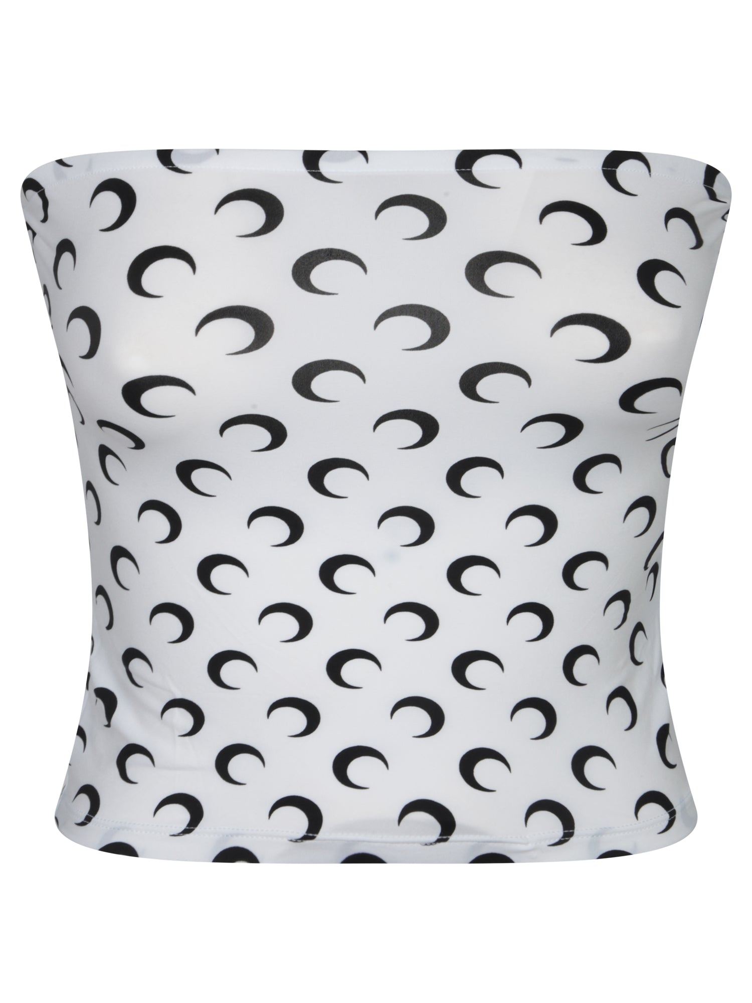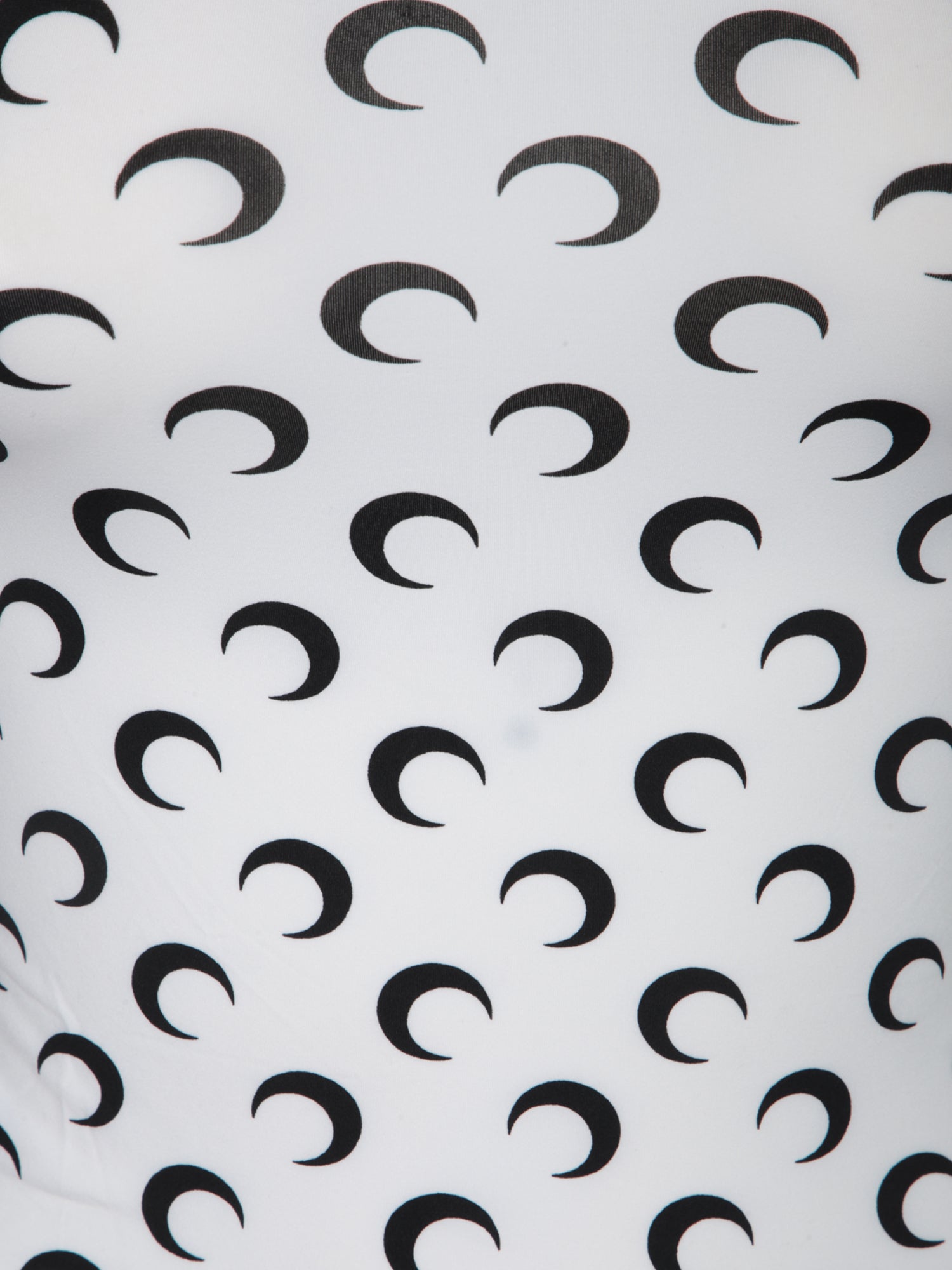 Sleeveless. Crescent moon print design. Fitted shape. Straight hem.