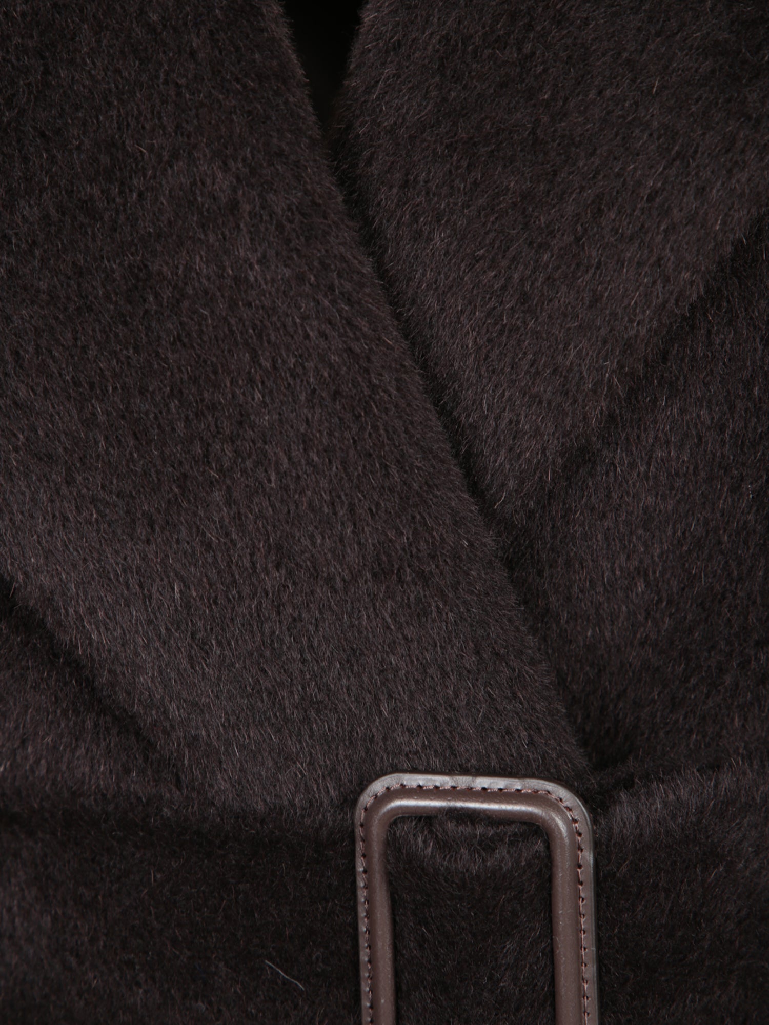 Alpaca coat with belt. Double-breasted. Wide lapel collar.