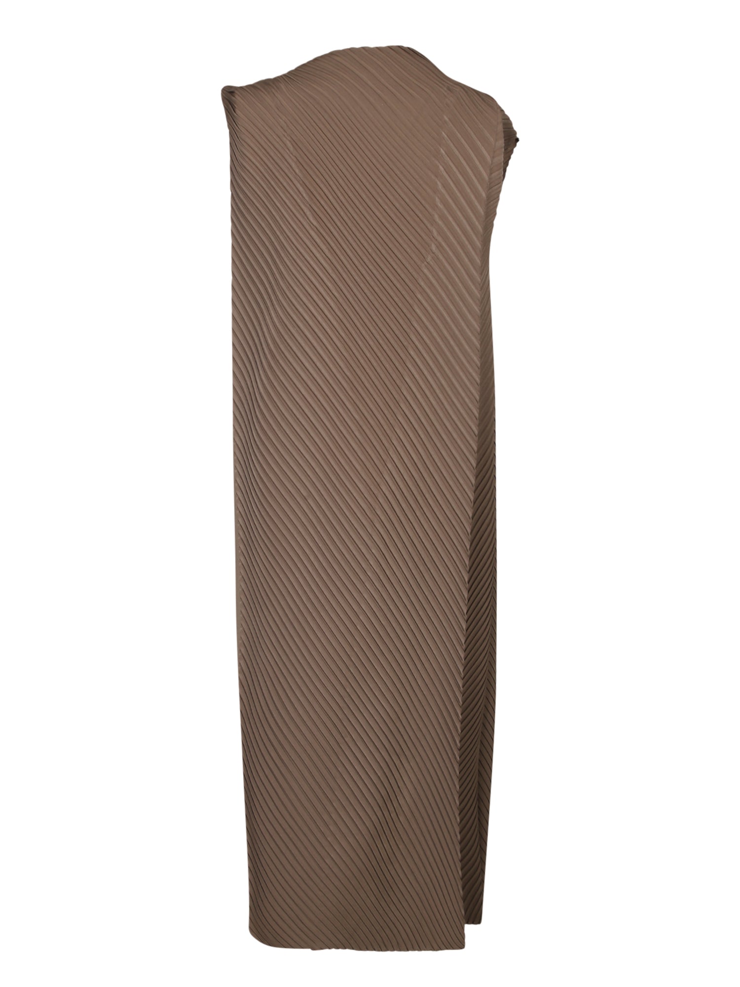 Sleeveless midi dress. Pleated fabric. No closure.