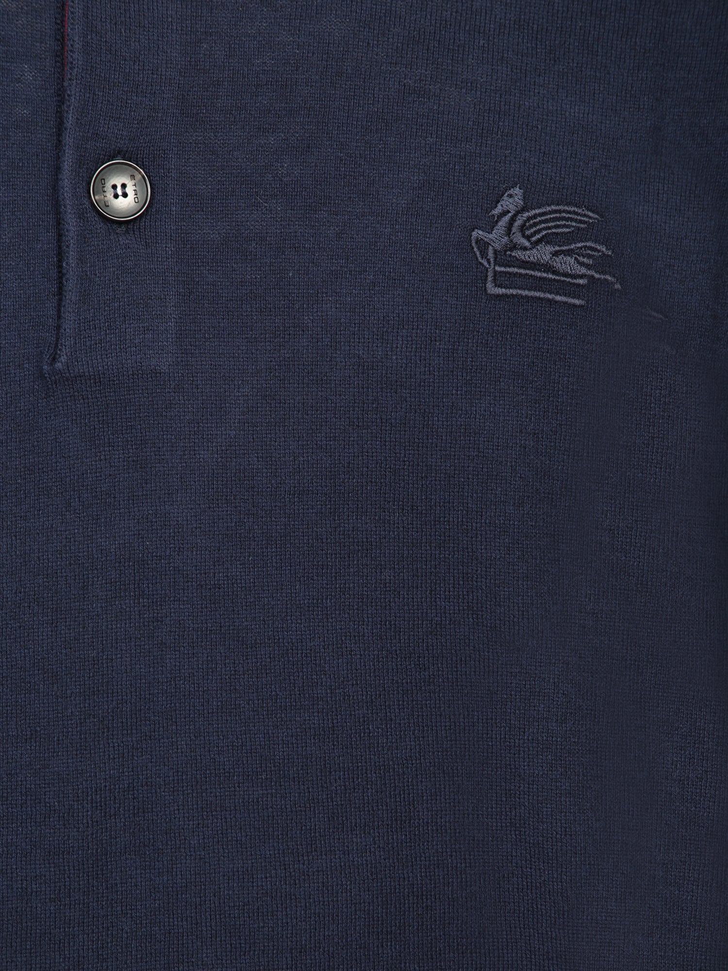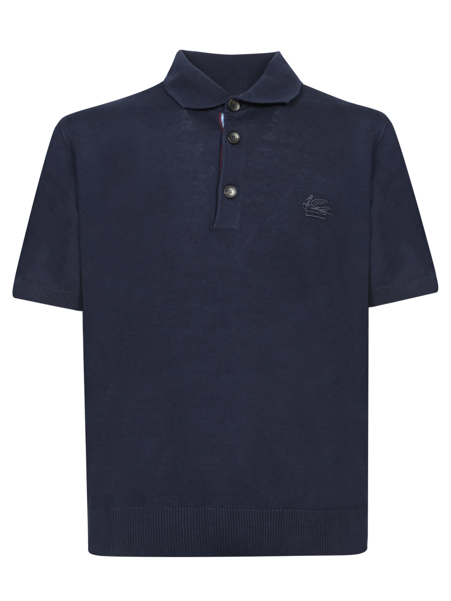 Crafted in a soft knit, this Etro blue polo features a subtle embroidered logo on the chest adding a distinctive touch. The clean design is perfect for a casual yet sophisticated look.