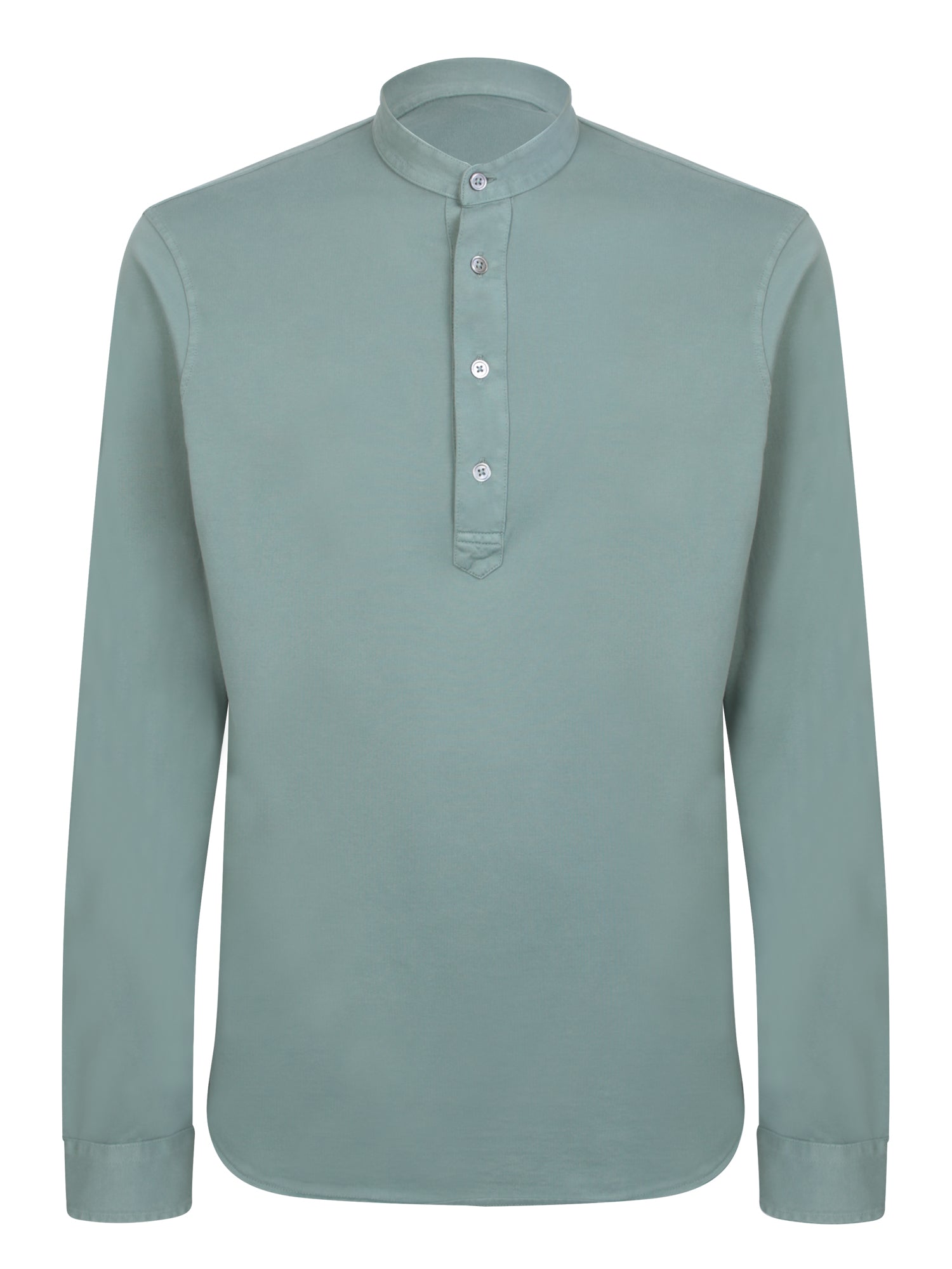 Korean collar sage green shirt by Dell'Oglio. The brand boasts tailoring made in Italy