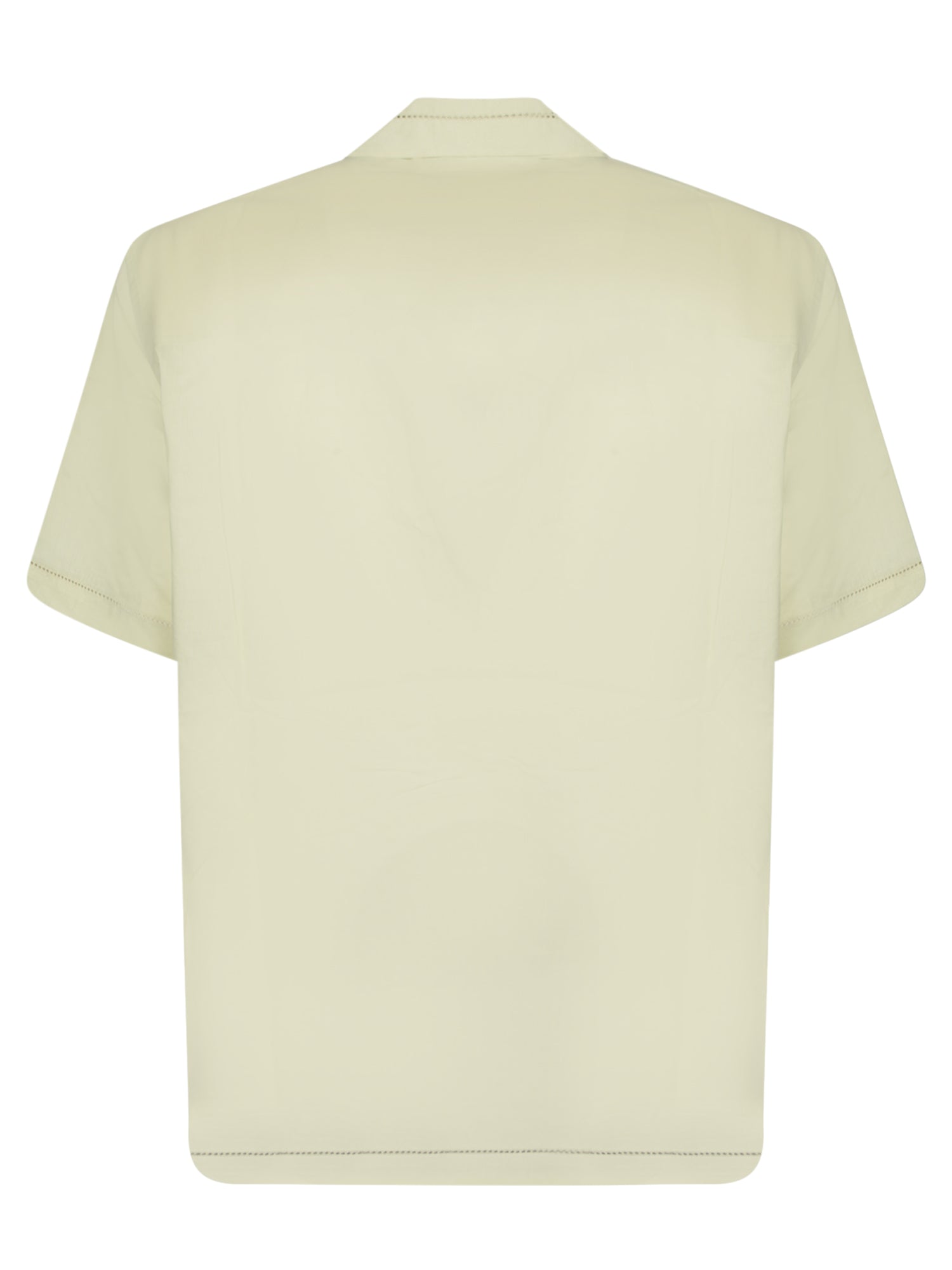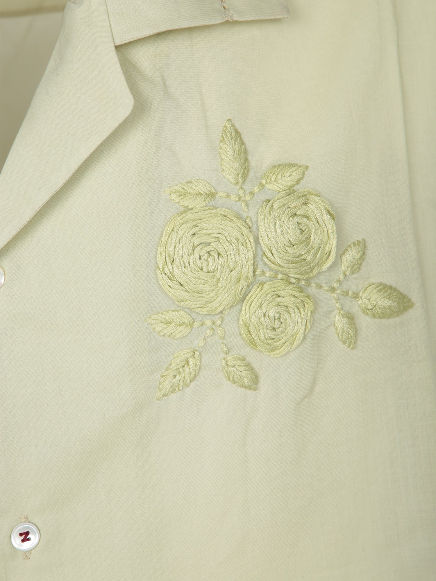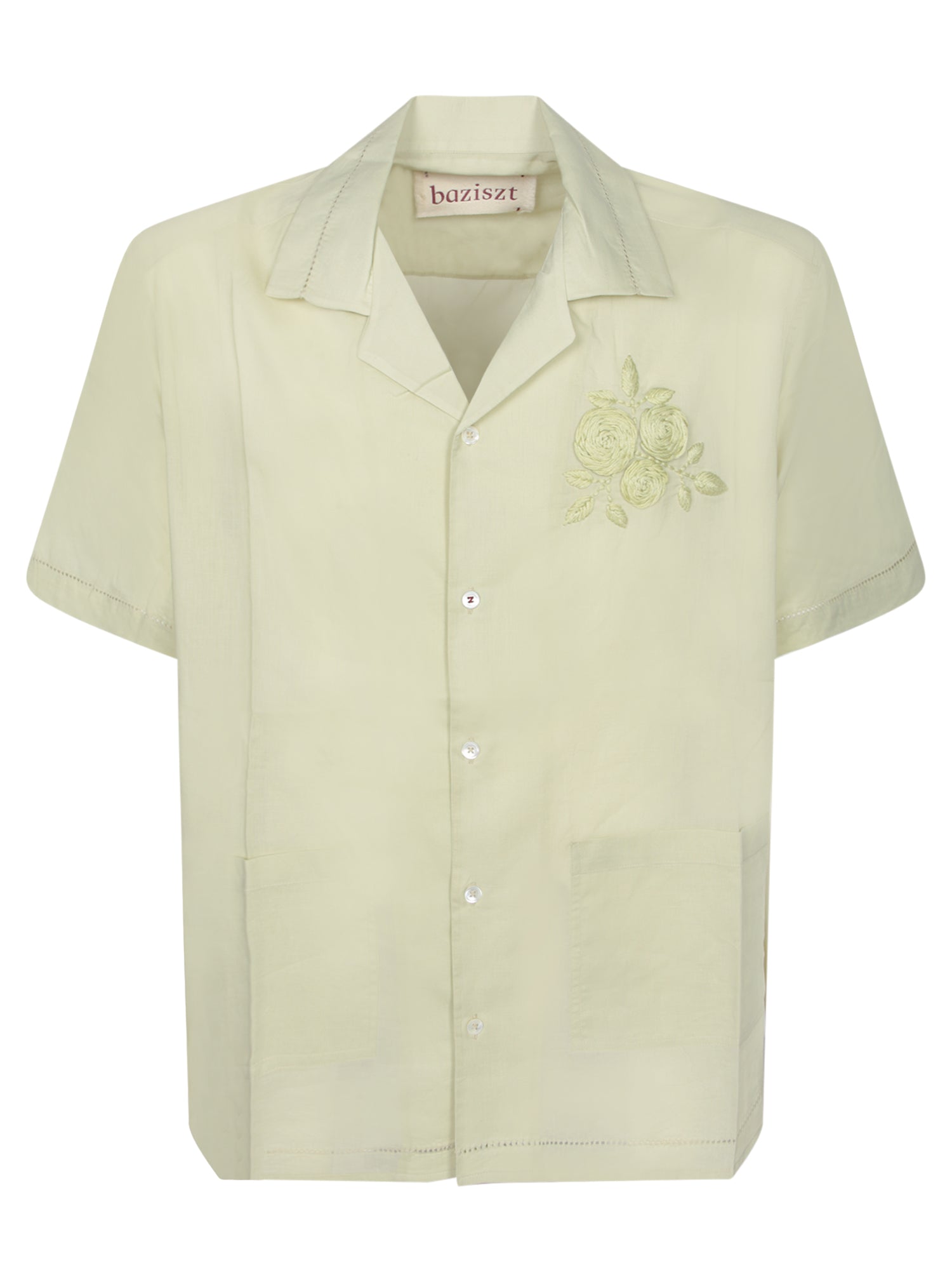 Short sleeve shirt in lightweight fabric. Floral embroidery detail on the chest. Front button closure.