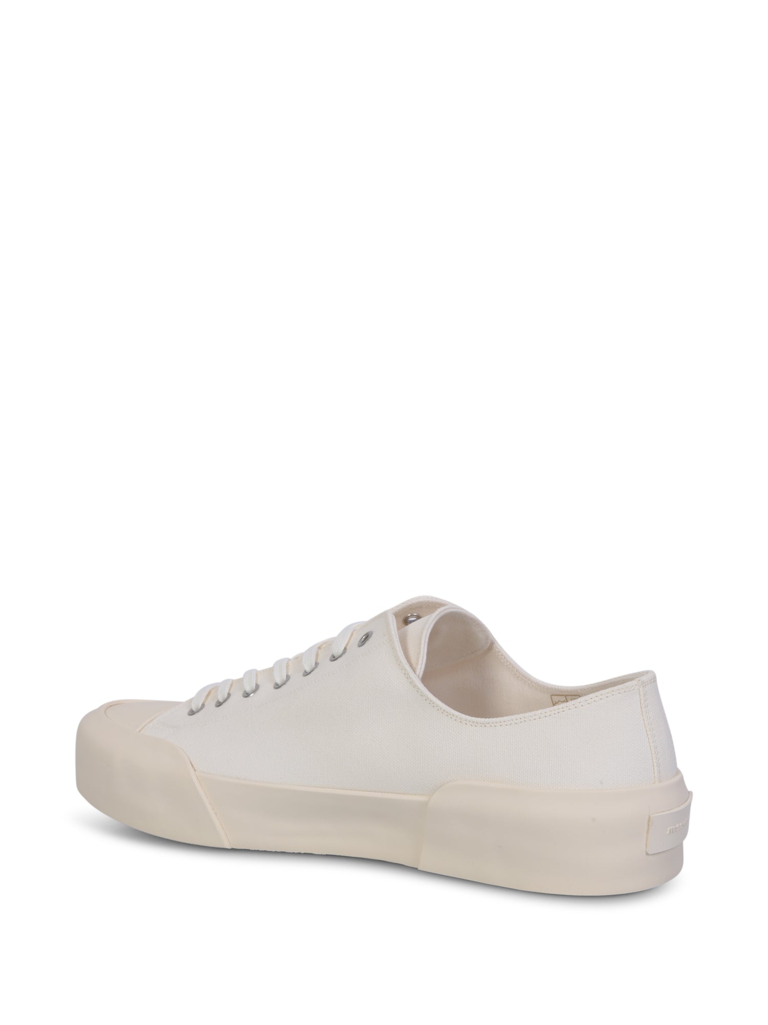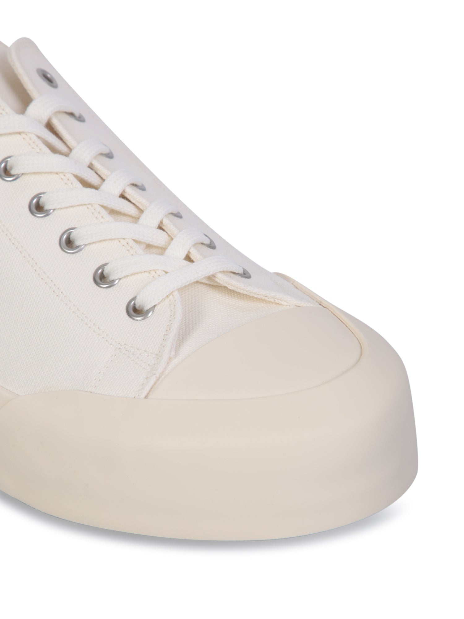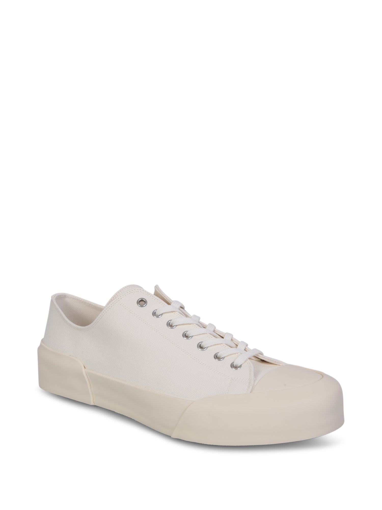Lace-up low white sneakers by Jil Sander. Through these shoes, the brand showcases its minimalist style