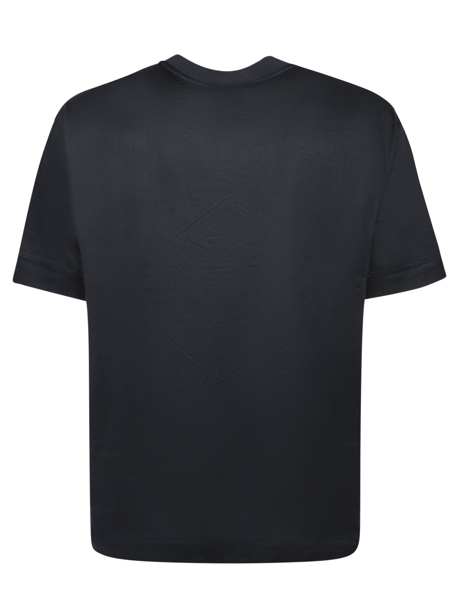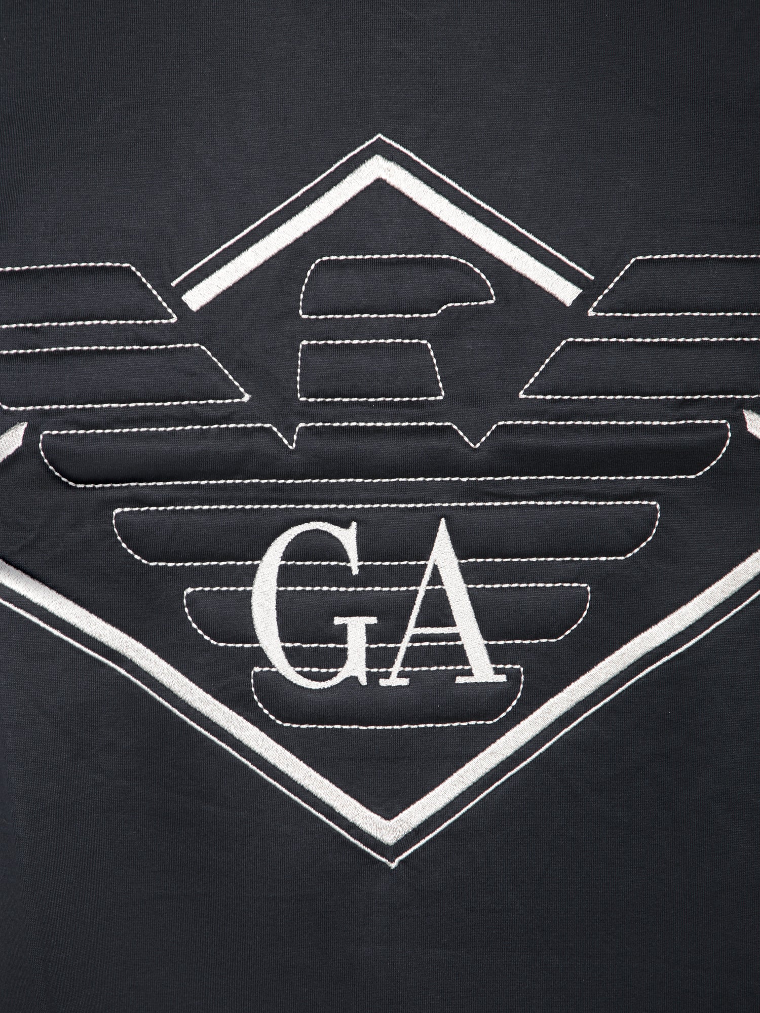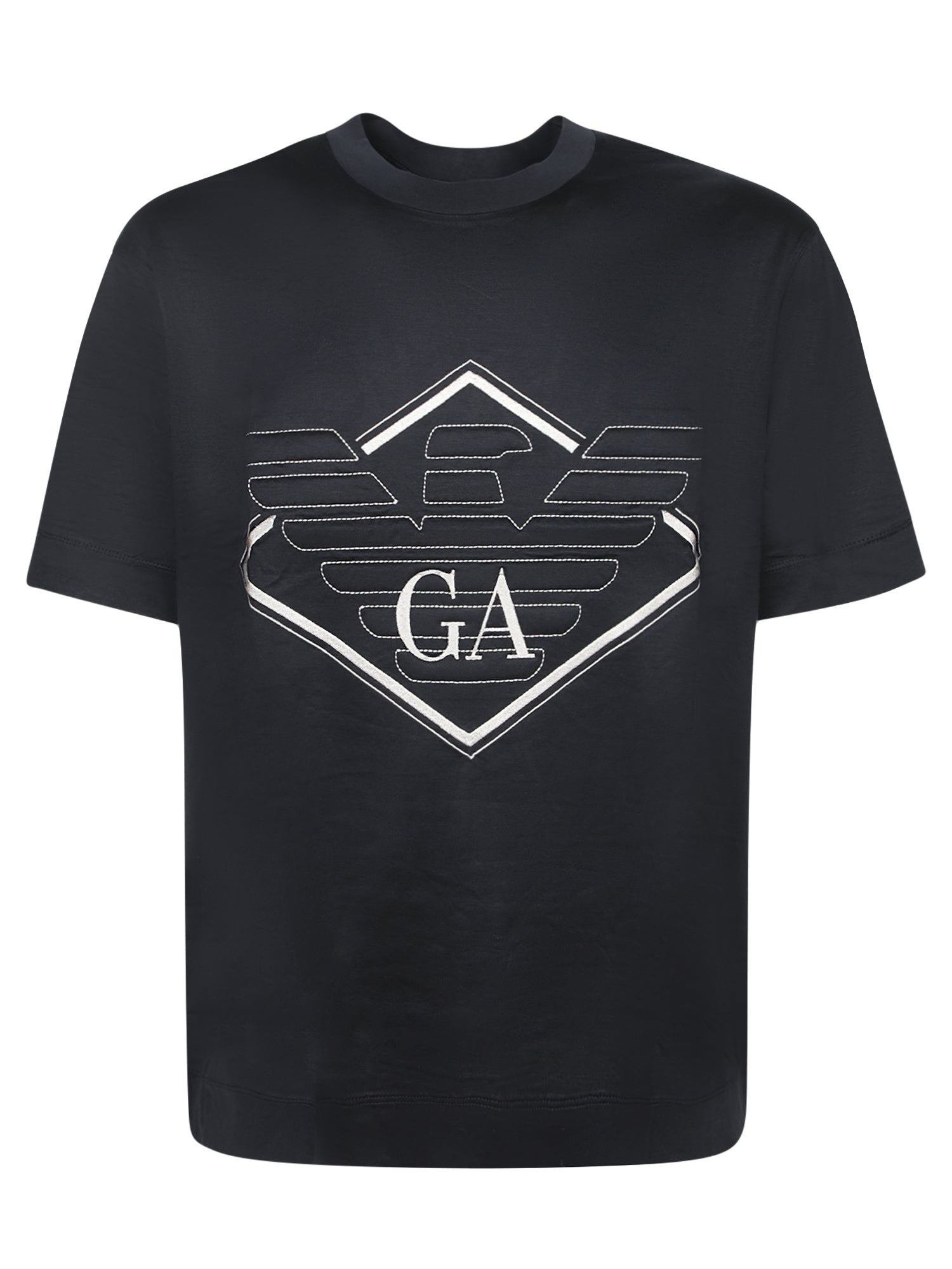 Short-sleeved cotton t-shirt. Blue color with raised white EMPORIO ARMANI Eagle logo.