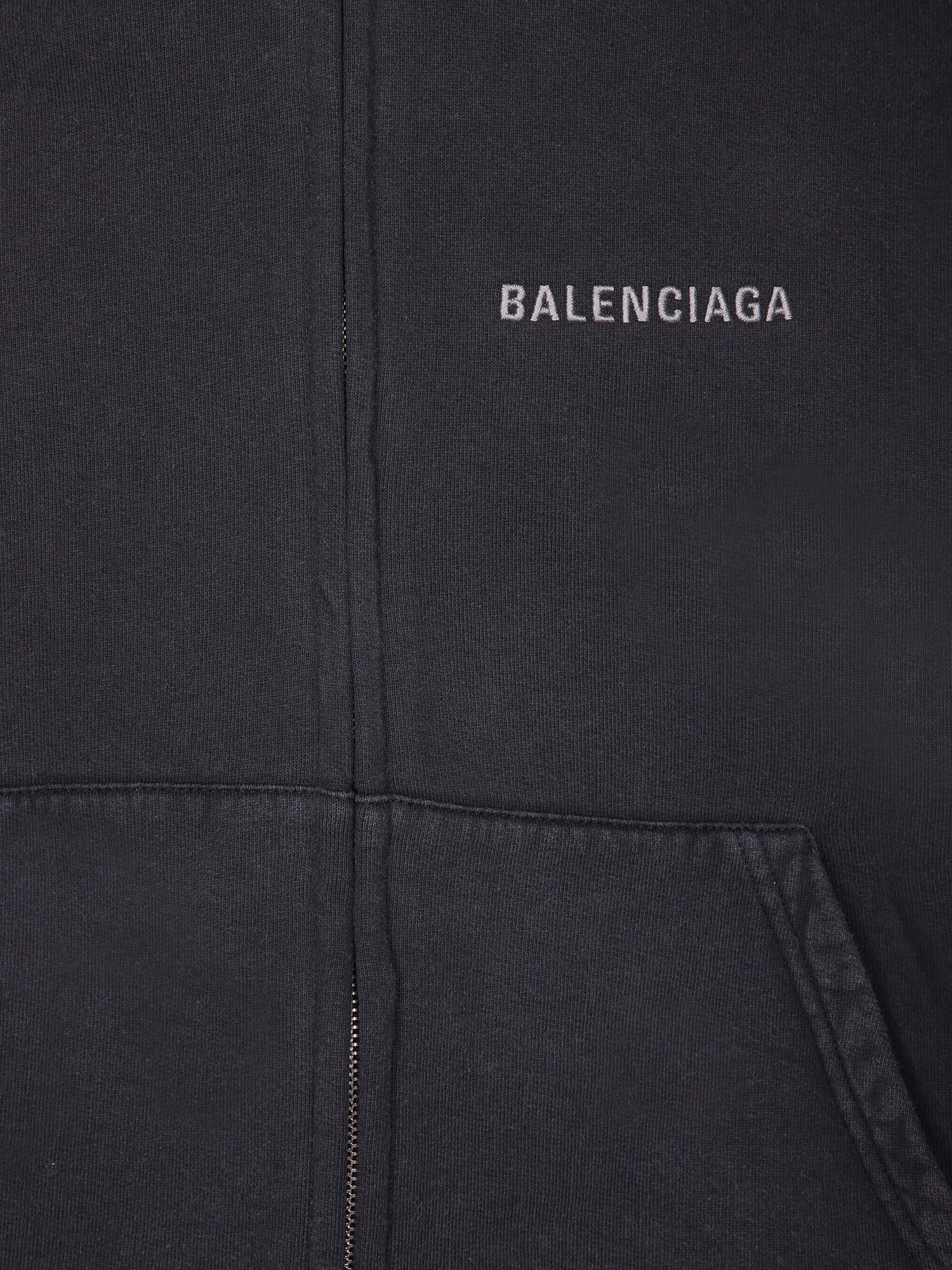 Hooded sweatshirt. Front zip closure. Side pockets.