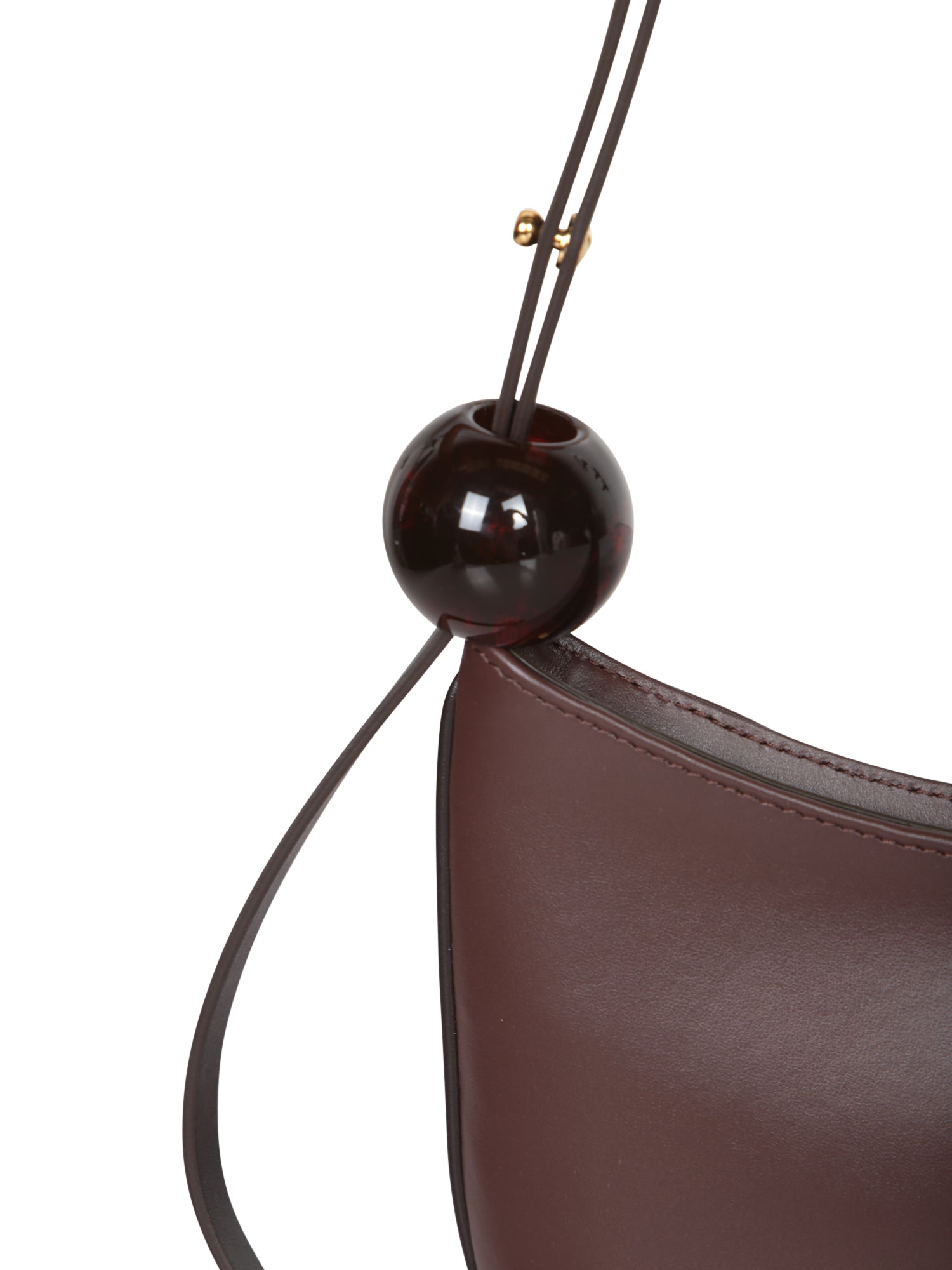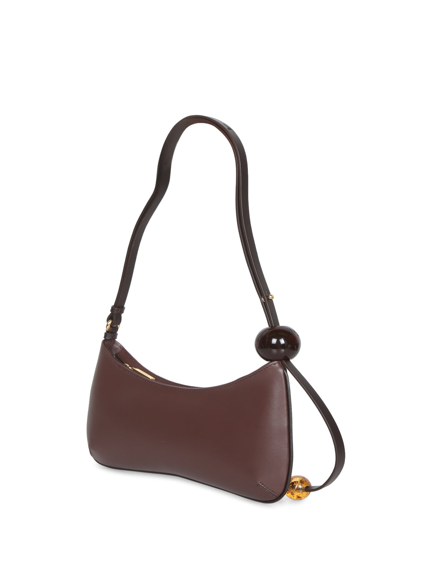 Crafted from smooth leather, adjustable shoulder strap, zip closure.