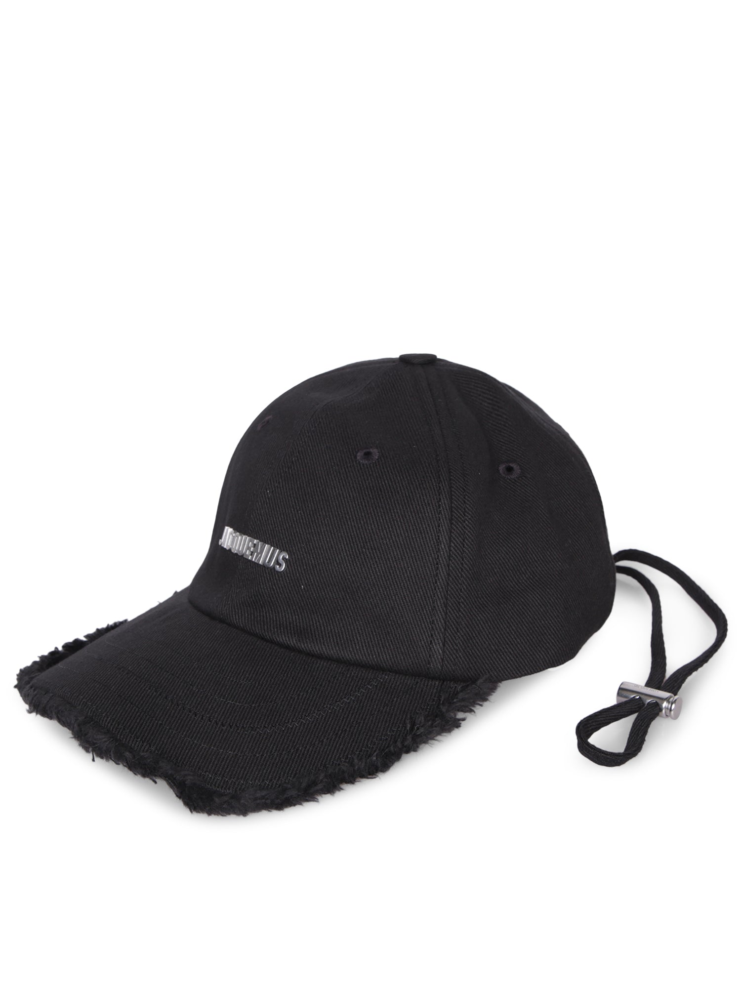 Hat with visor, frayed edge, adjustable closure. Jacquemus logo on the front.