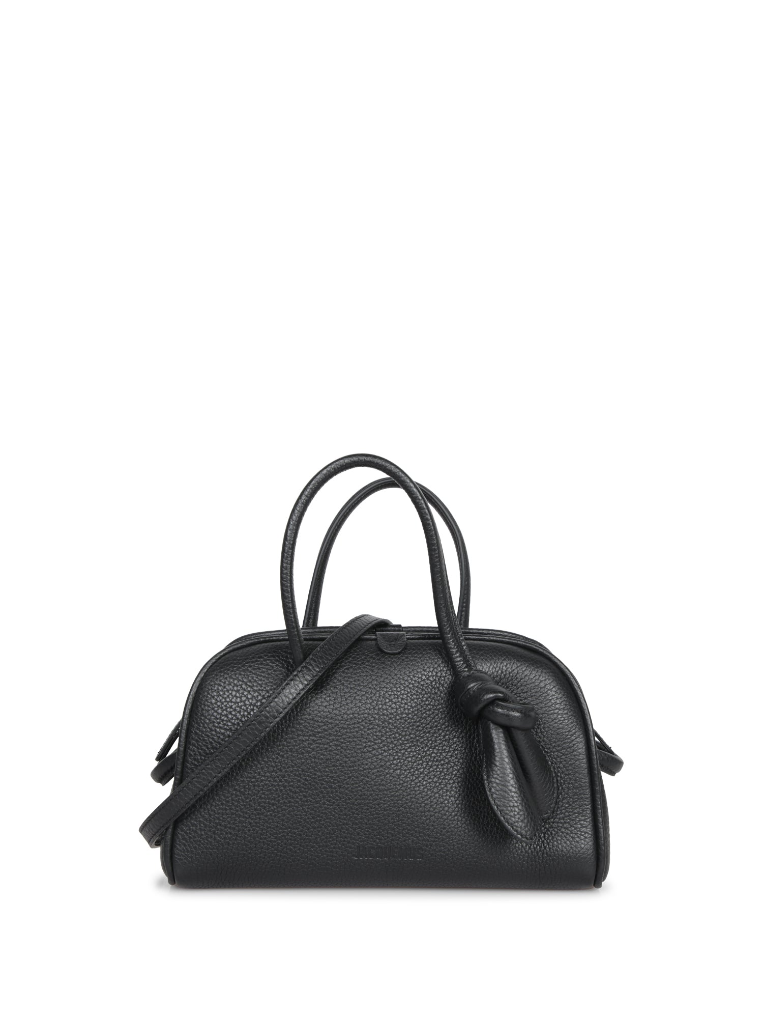 Leather bag with top handles and an adjustable strap. Embossed JACQUEMUS logo.
