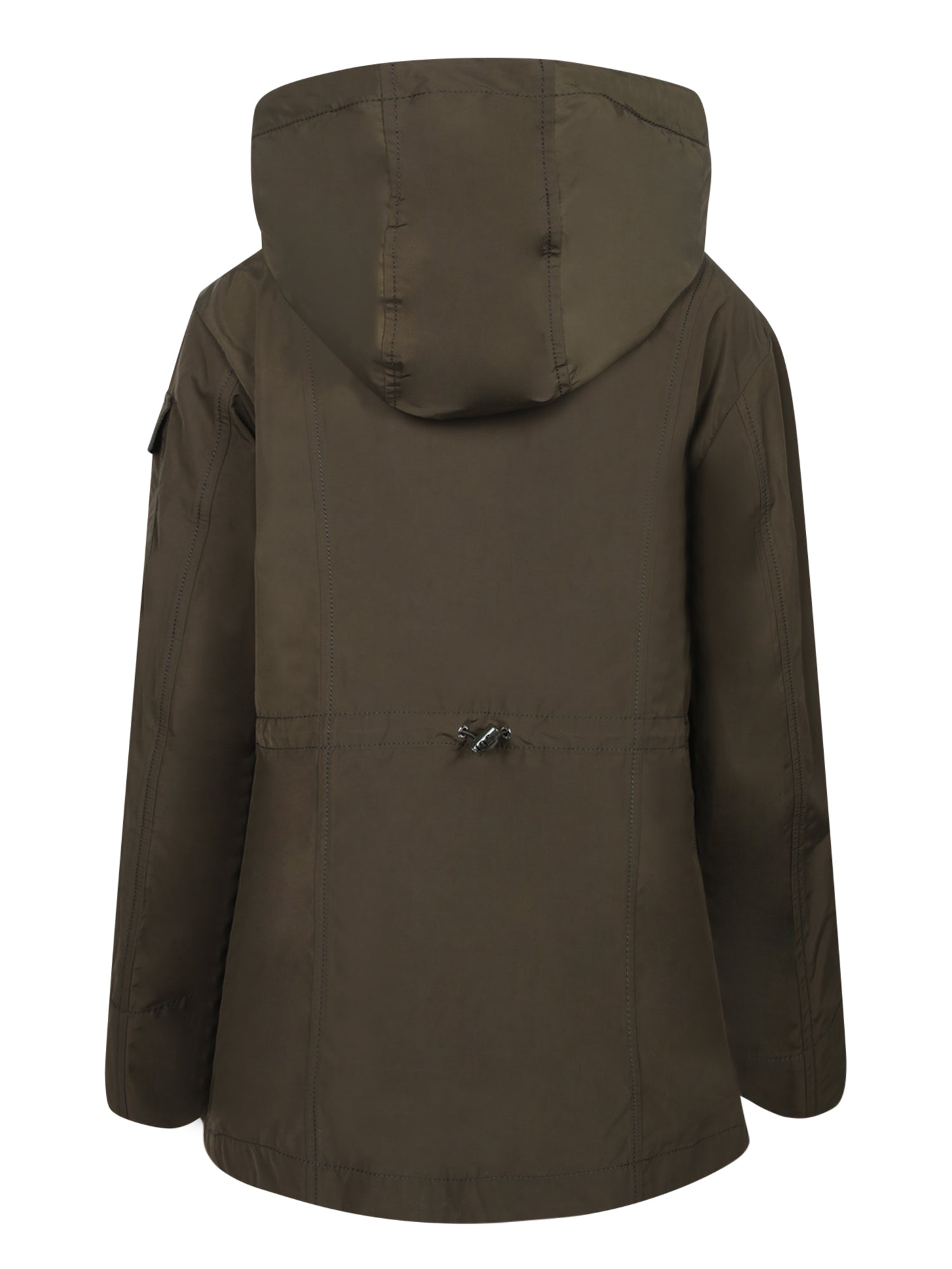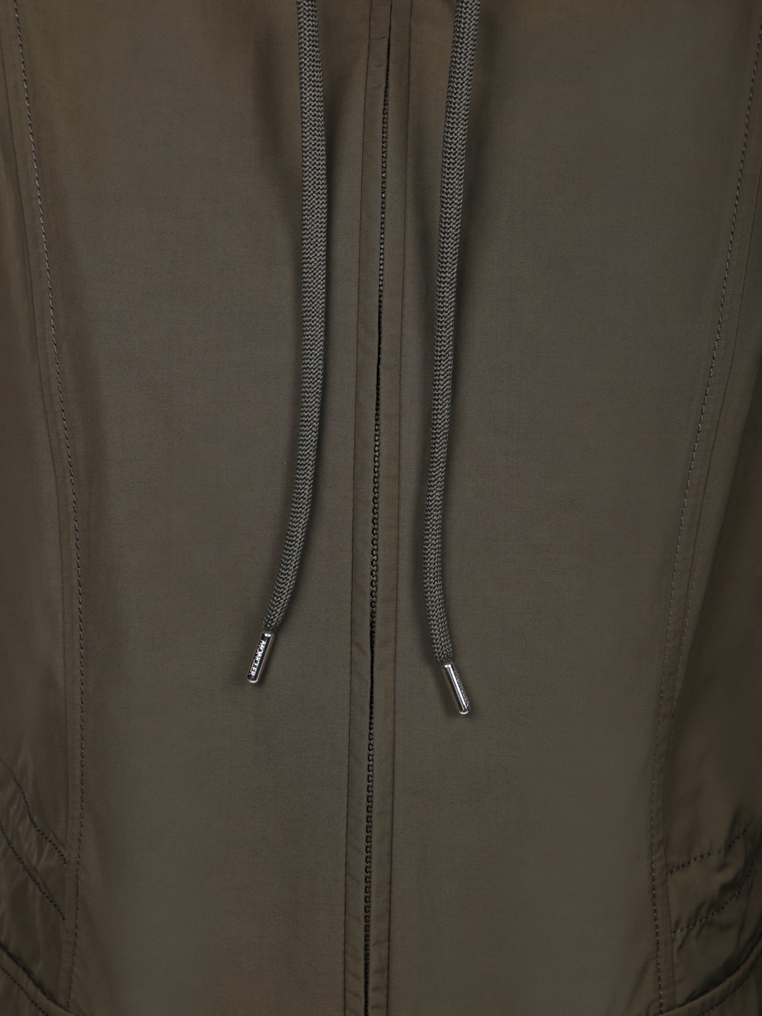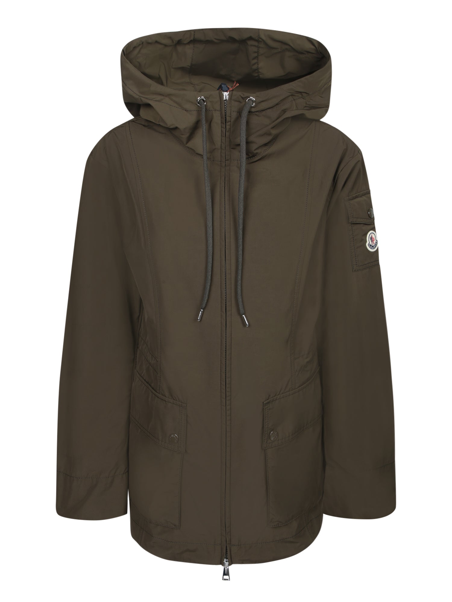 A blend of style and functionality, this Moncler jacket in military green features an adjustable hood, large front pockets, and distinctive tailoring details, perfect for the urban adventurer.
