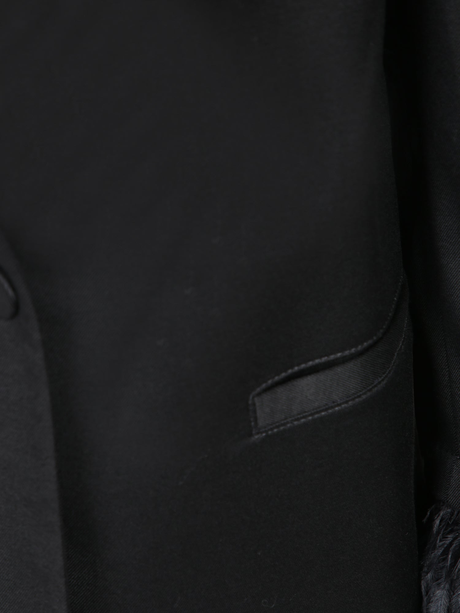 Single-breasted jacket in smooth fabric, with velvet lapels and fringe details on the sleeves.