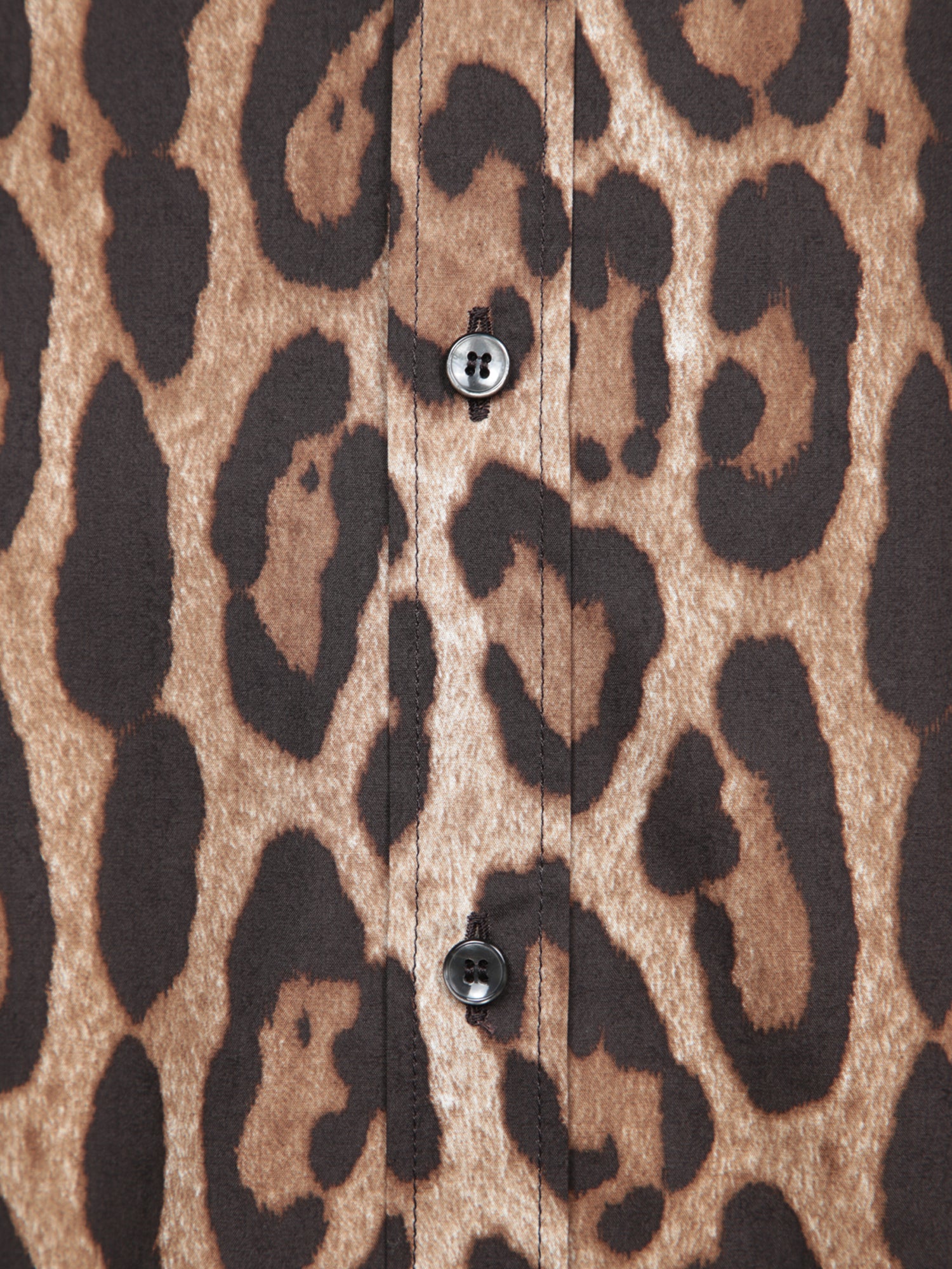 Silk shirt with leopard print. Classic collar and front button closure. Long sleeves with buttoned cuffs.