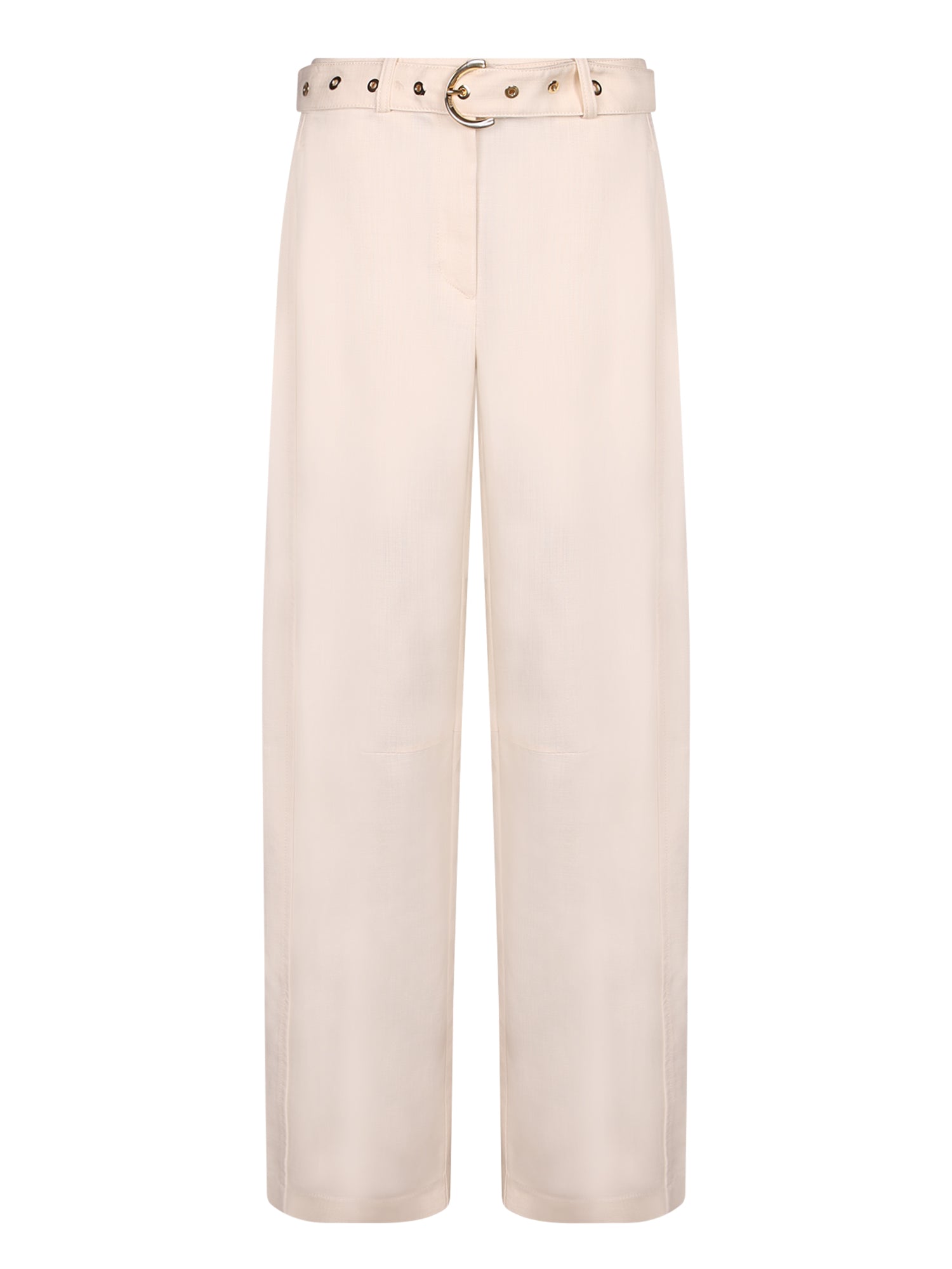 Elegant white trousers. High waist. Coordinated belt with decorative buckle.