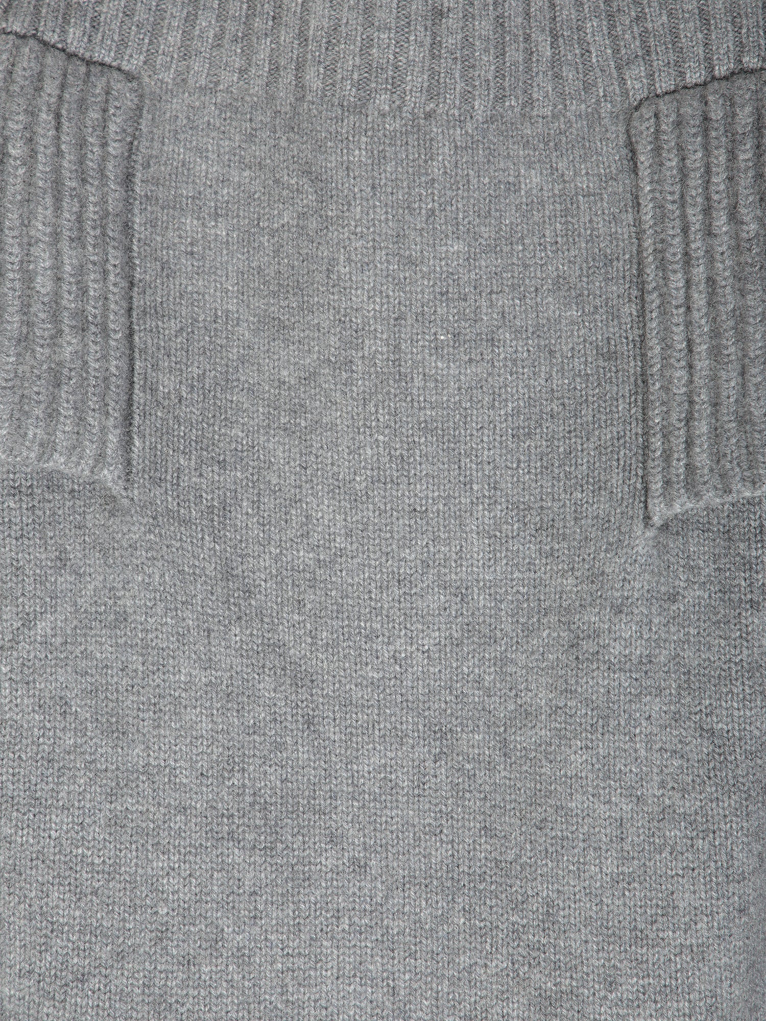 Knitted crew neckline. Grey cashmere fabric. Kangaroo pockets.