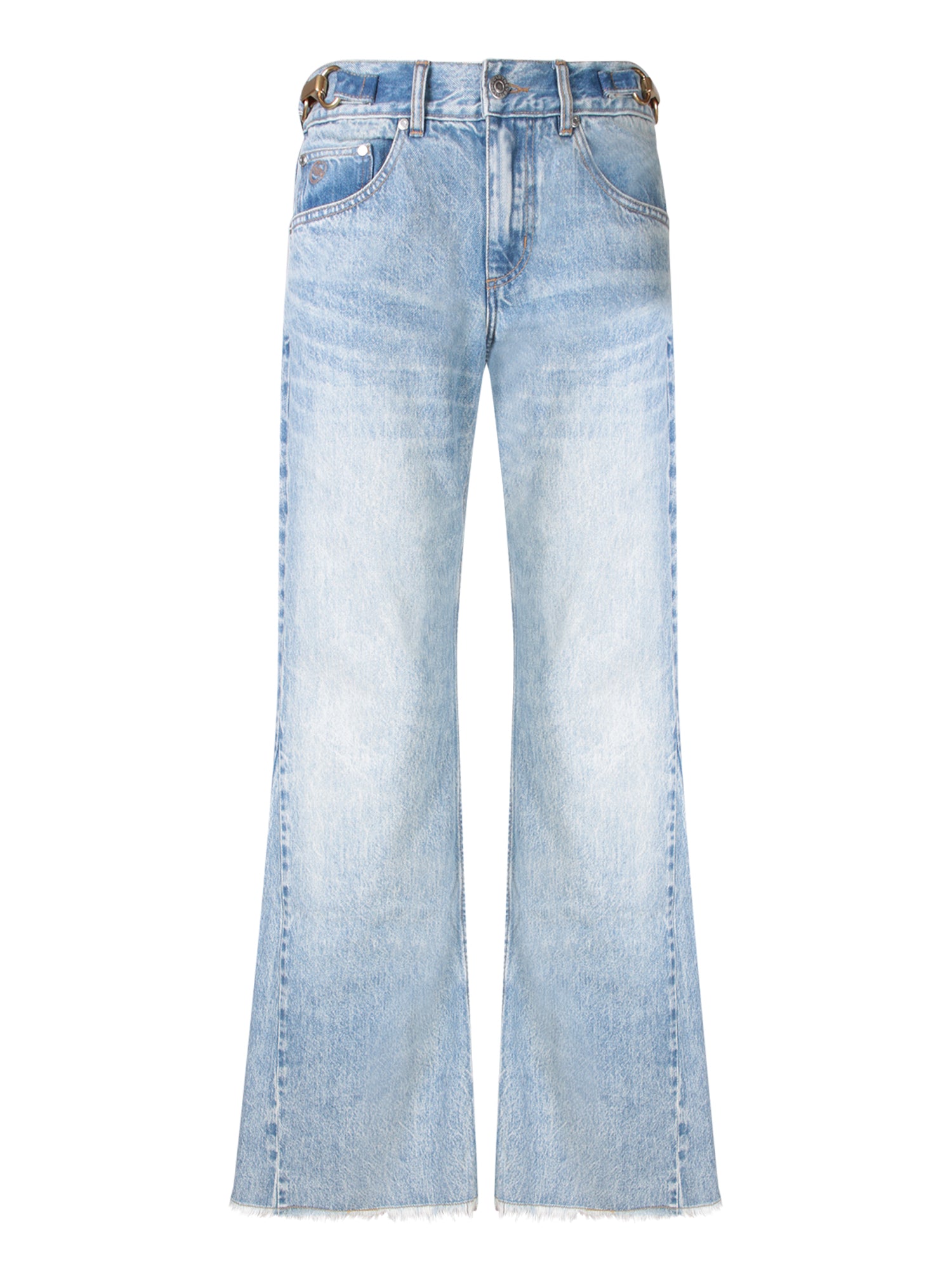Excellence in design meets casual comfort in Stella McCartney’s Light Blue Bootcut Jeans. A striking gold chain detail along the side seam adds a unique touch, perfect for an evening out.