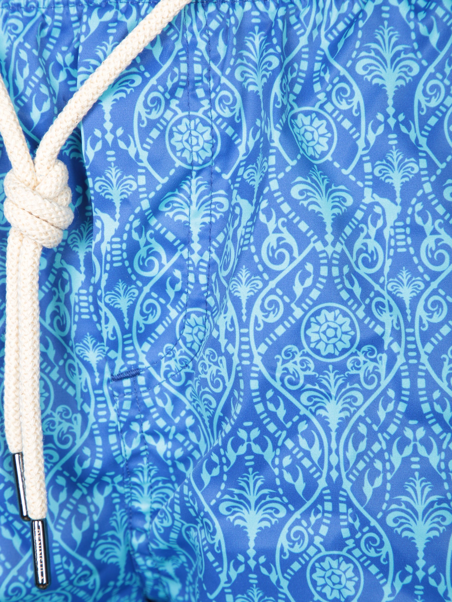 These Peninsula swim boxer shorts feature a unique vibrant and intricate light blue print, perfect for summer season or a beach holiday.
