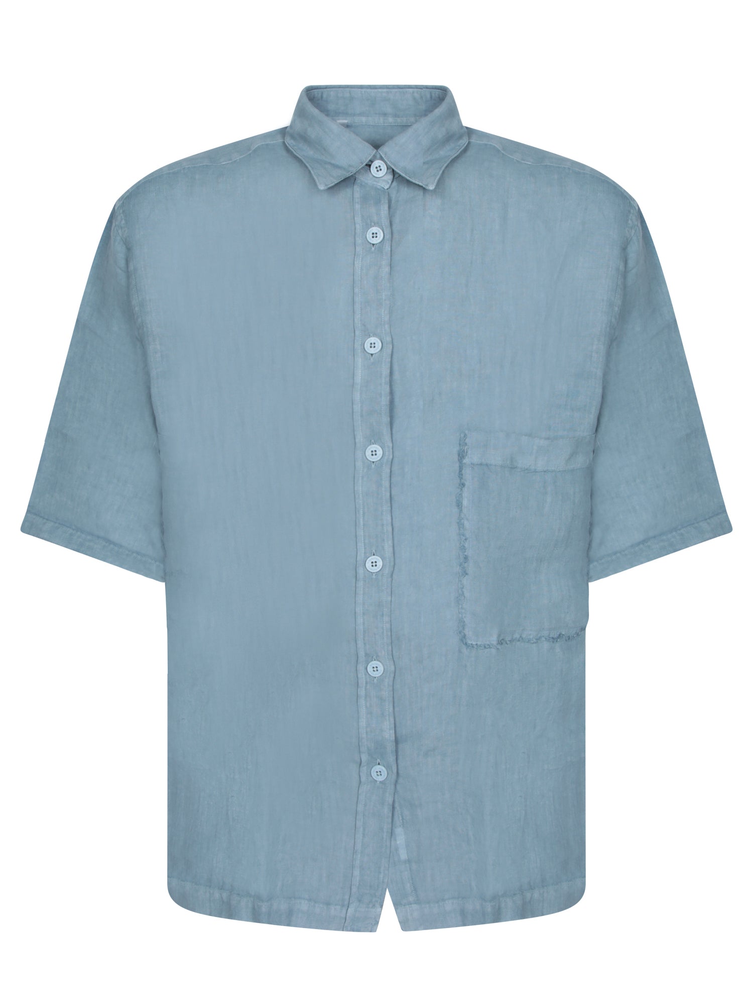 This elegant men's shirt by COSTUMEIN is crafted from pure linen, providing a comfortable fit and a sophisticated design with a practical touch through a chest pocket. The light blue color and relaxed cut make it perfect for casual occasions or as a styli