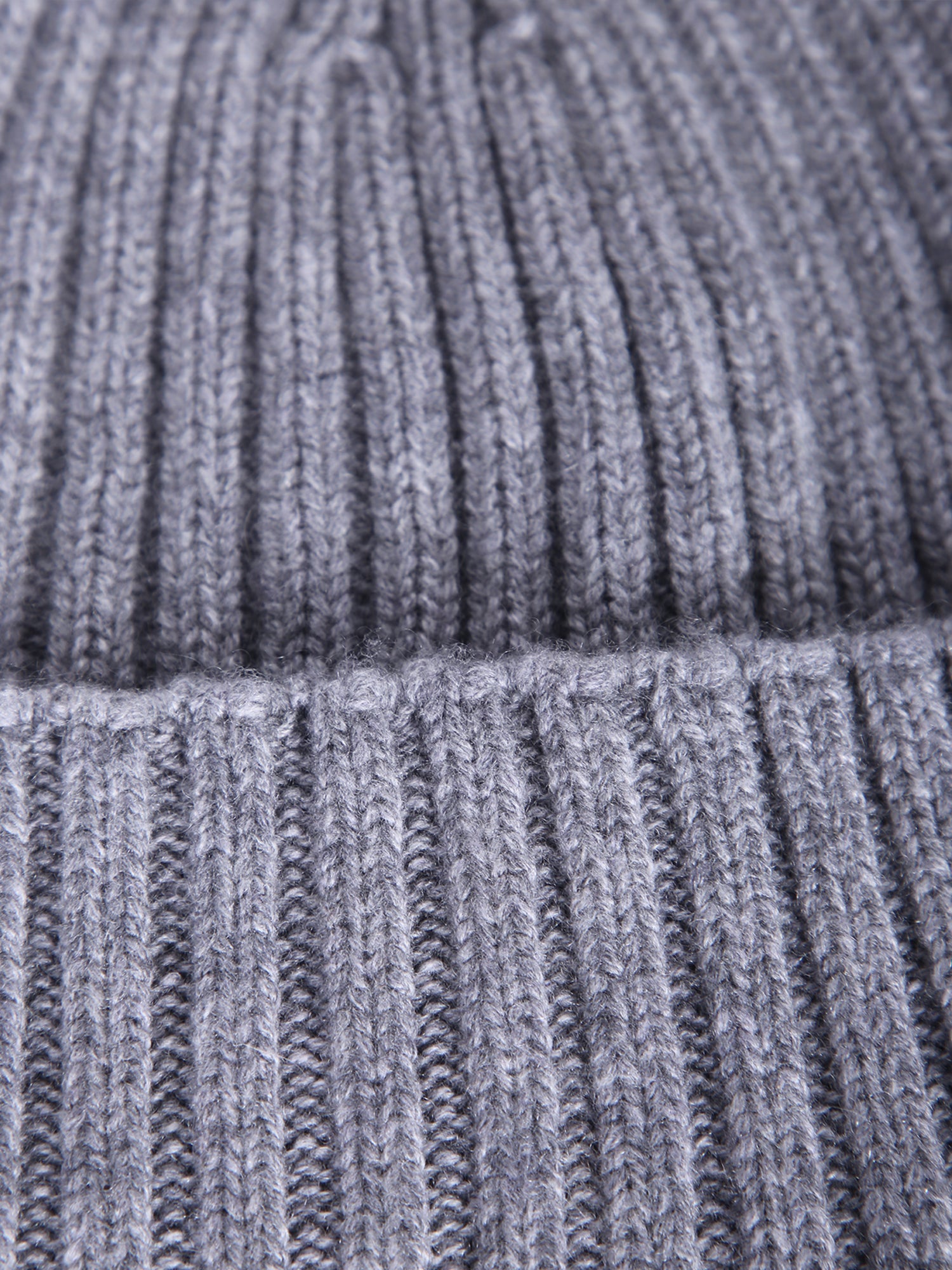 Ribbed knit hat. Light grey color. Folded brim.