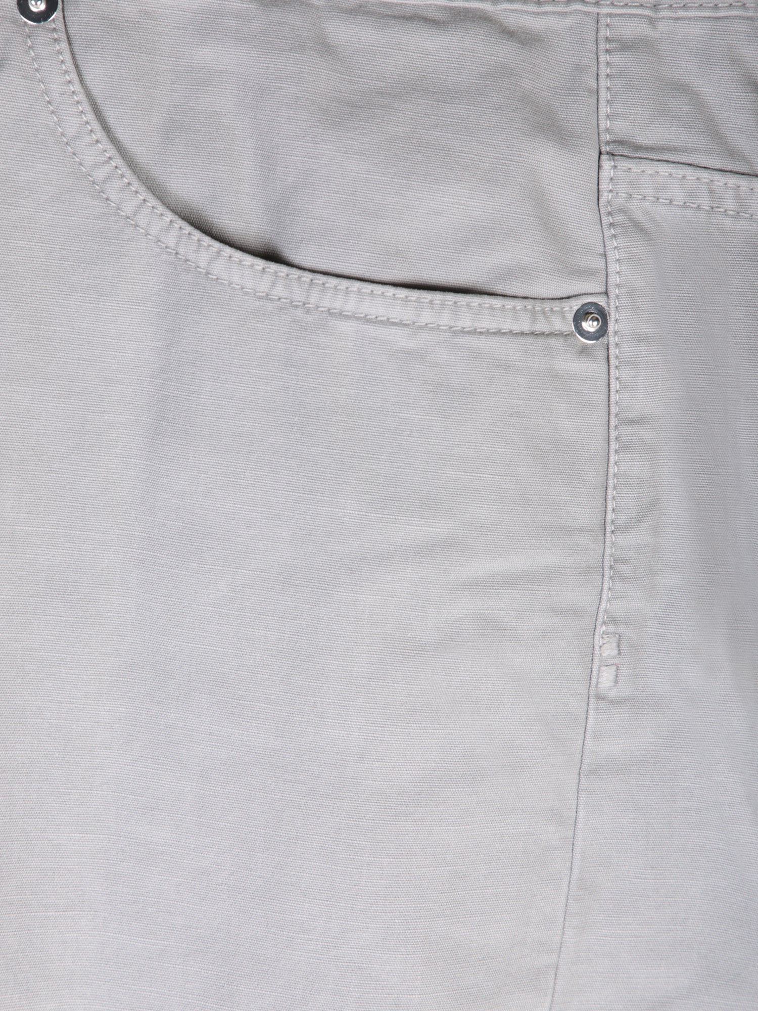 Wide fit, regular waist, front zip and button closure, five-pocket design.