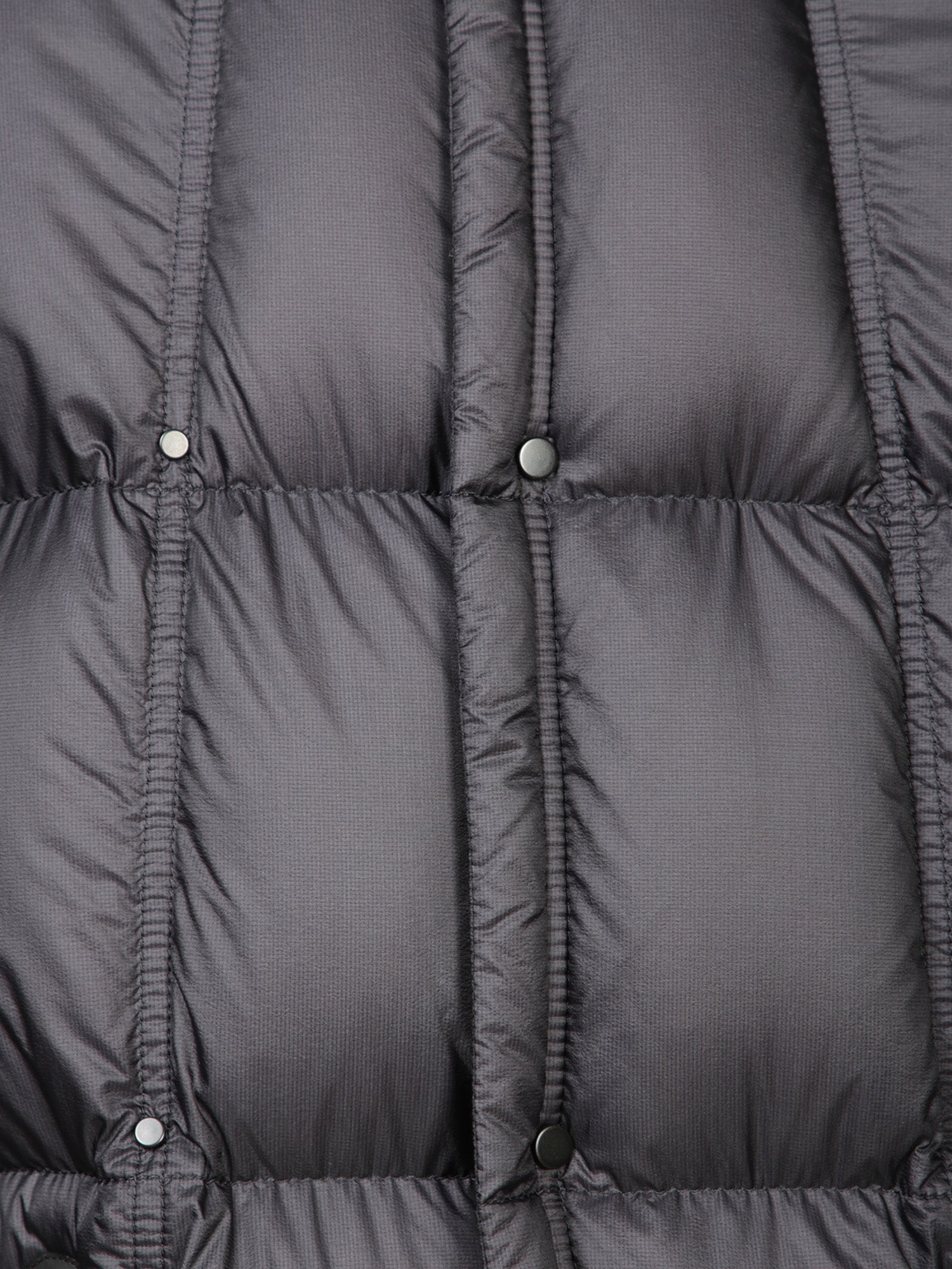 Padded vest with hood. Water-resistant fabric. Front zip closure.