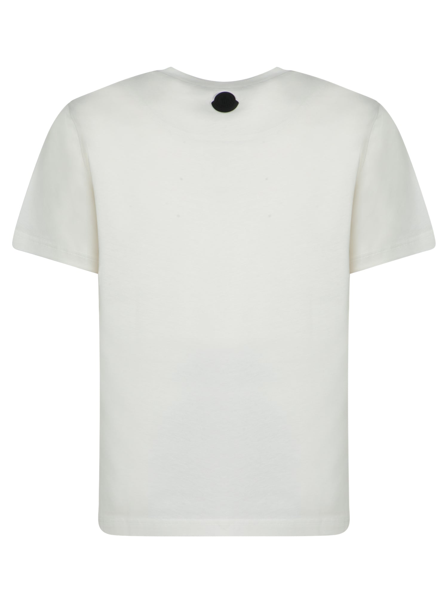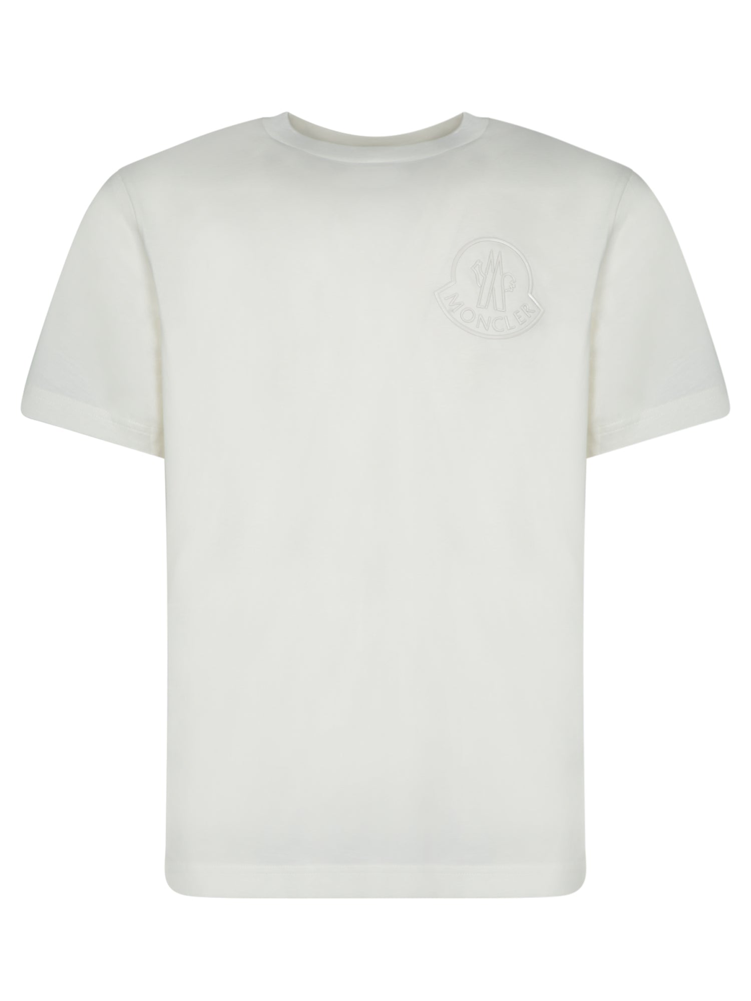 Short-sleeved white cotton t-shirt. Tonal Moncler logo on the chest. Crew neck.