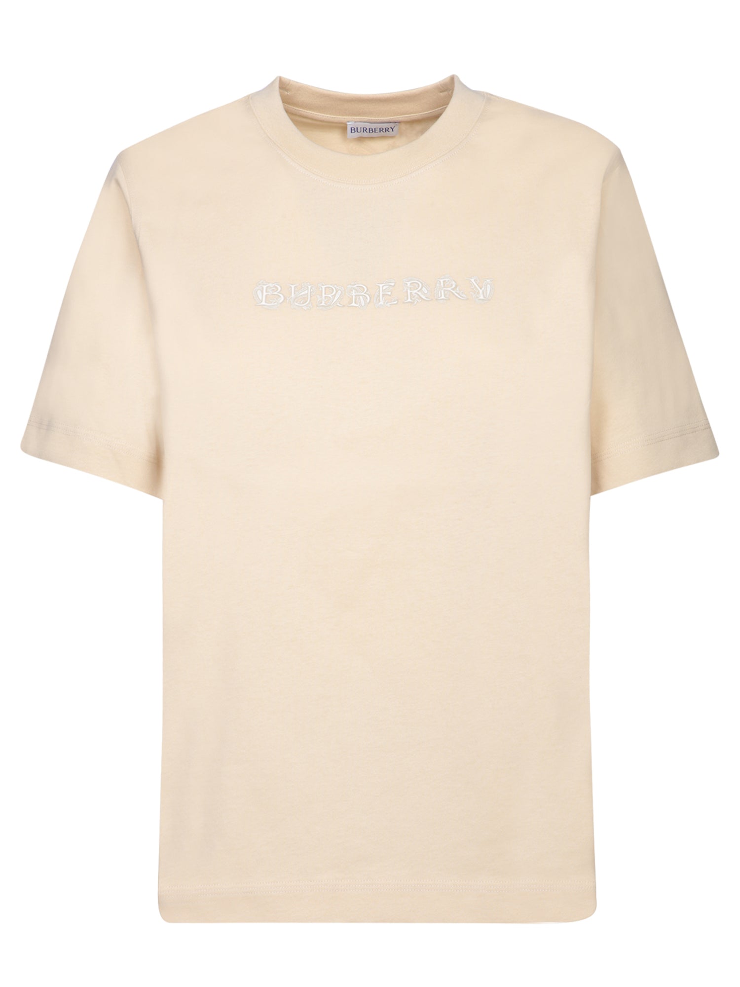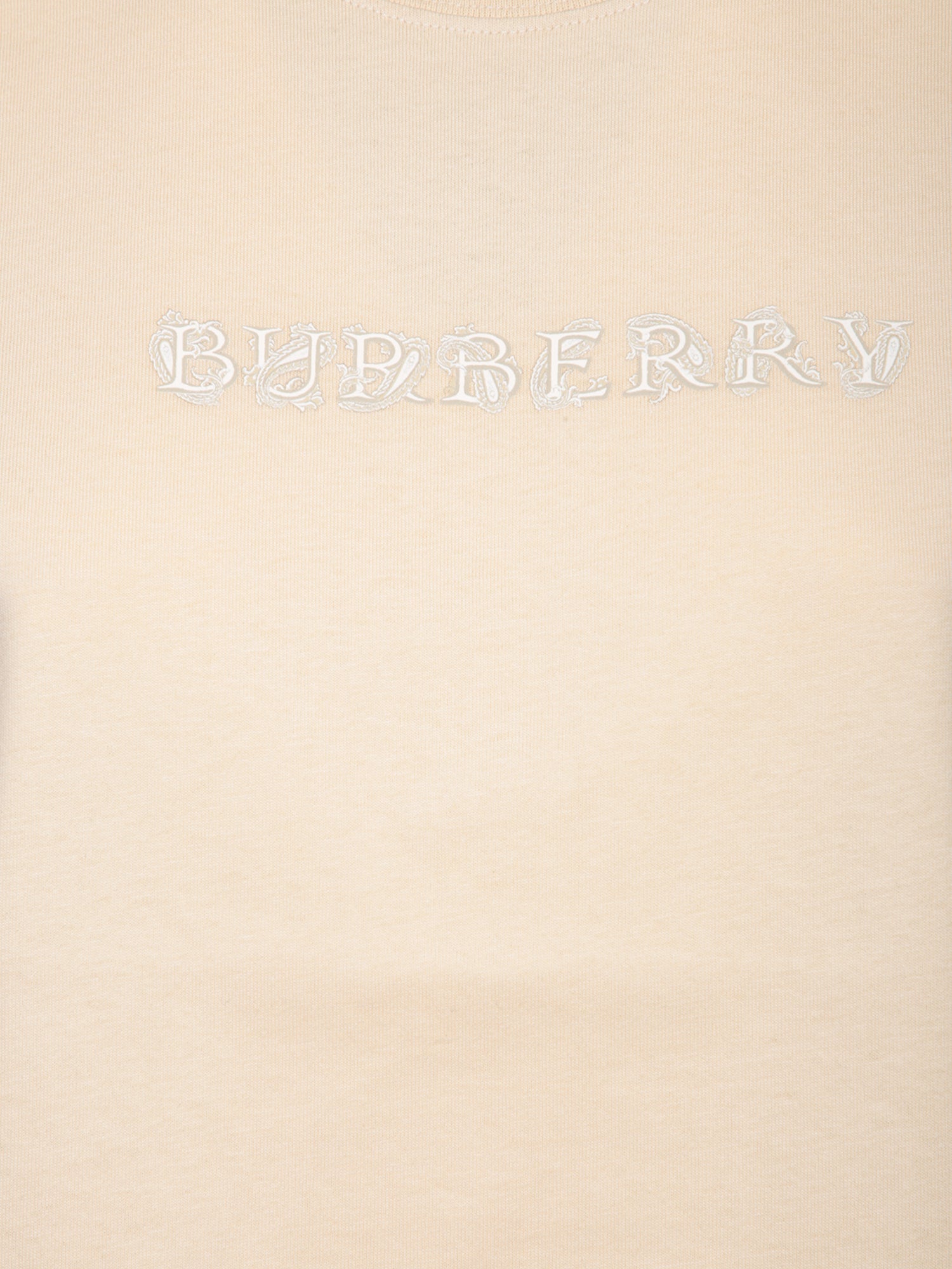Beige cotton t-shirt with tonal embroidered Burberry logo. Crew neck and short sleeves.