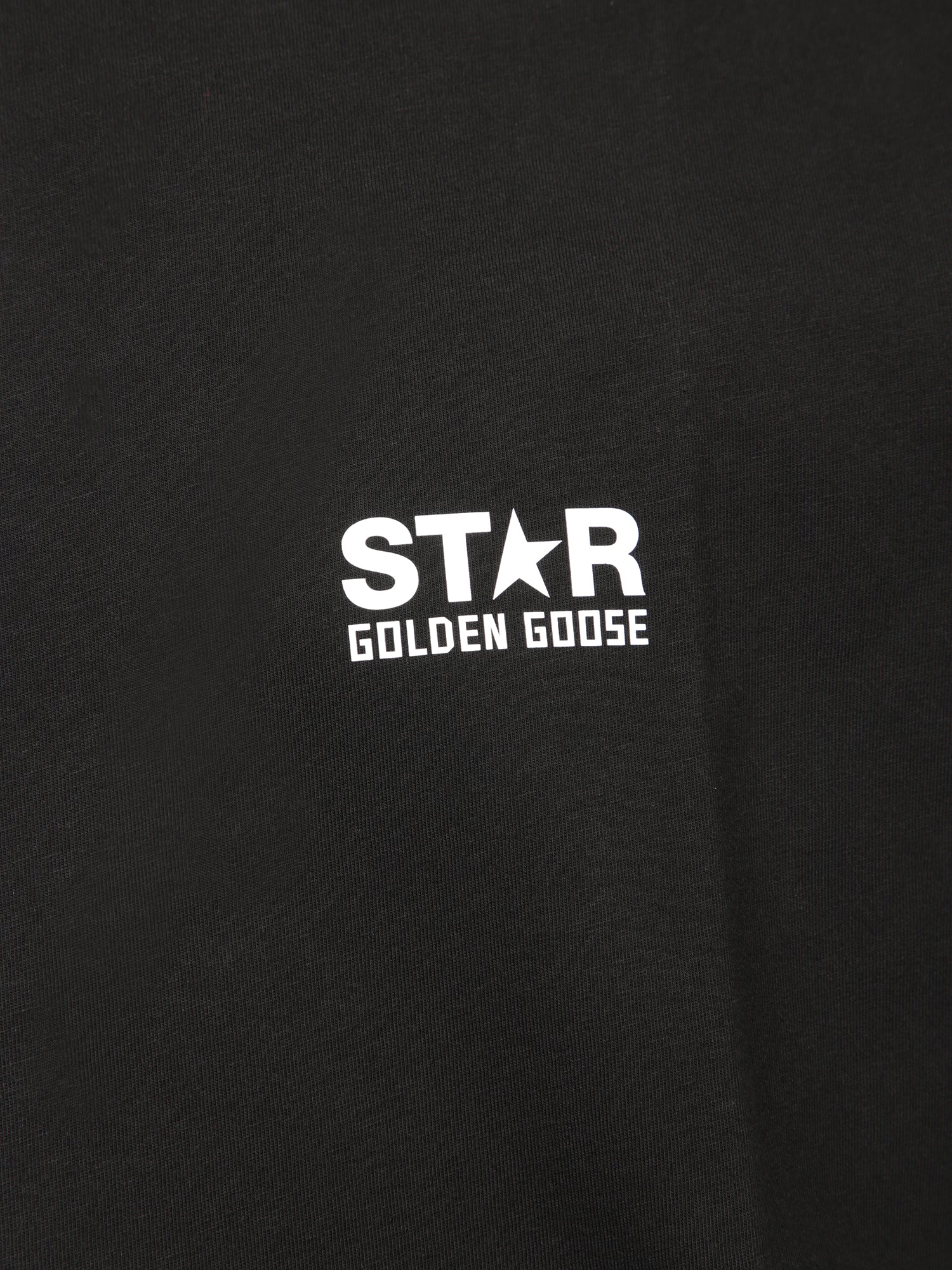 Expresses an urban appeal with authentic, trendy details. Perfect for casual pairings, this t-shirt is enhanced by the iconic Golden Goose logo in white, elegantly contrasting against the black base.