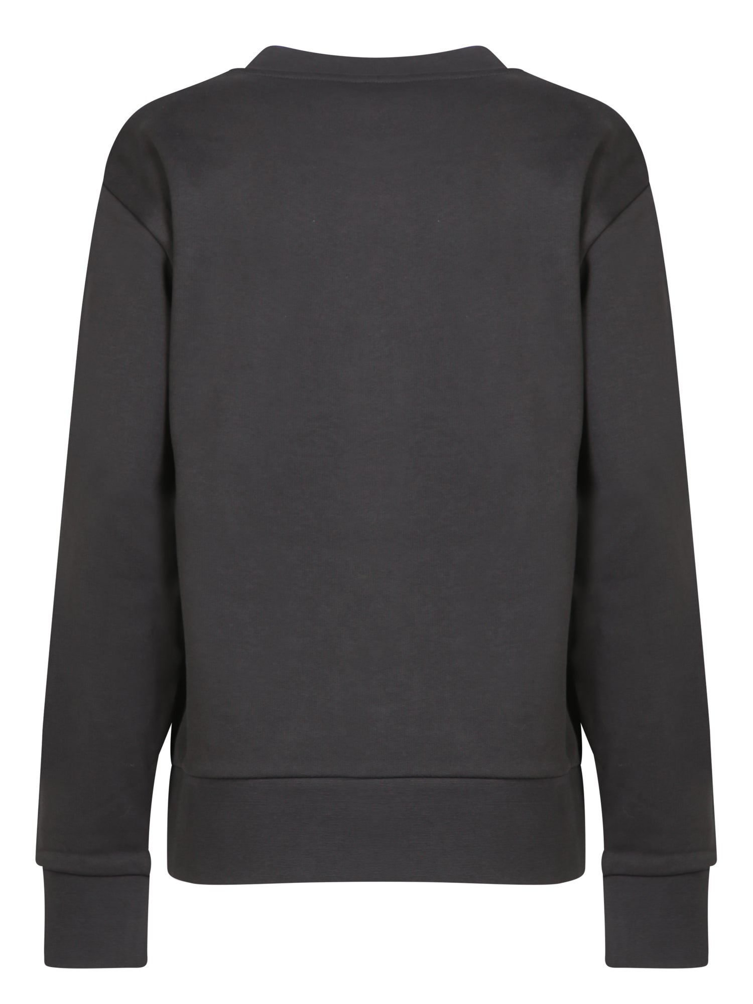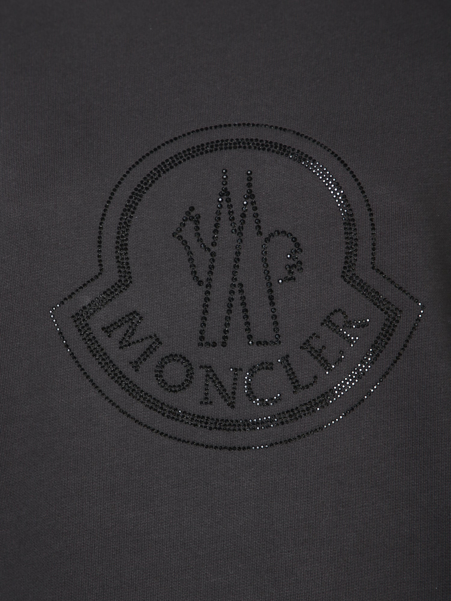 Black cotton sweatshirt with embossed circular Moncler logo. Long sleeves and crew neck.