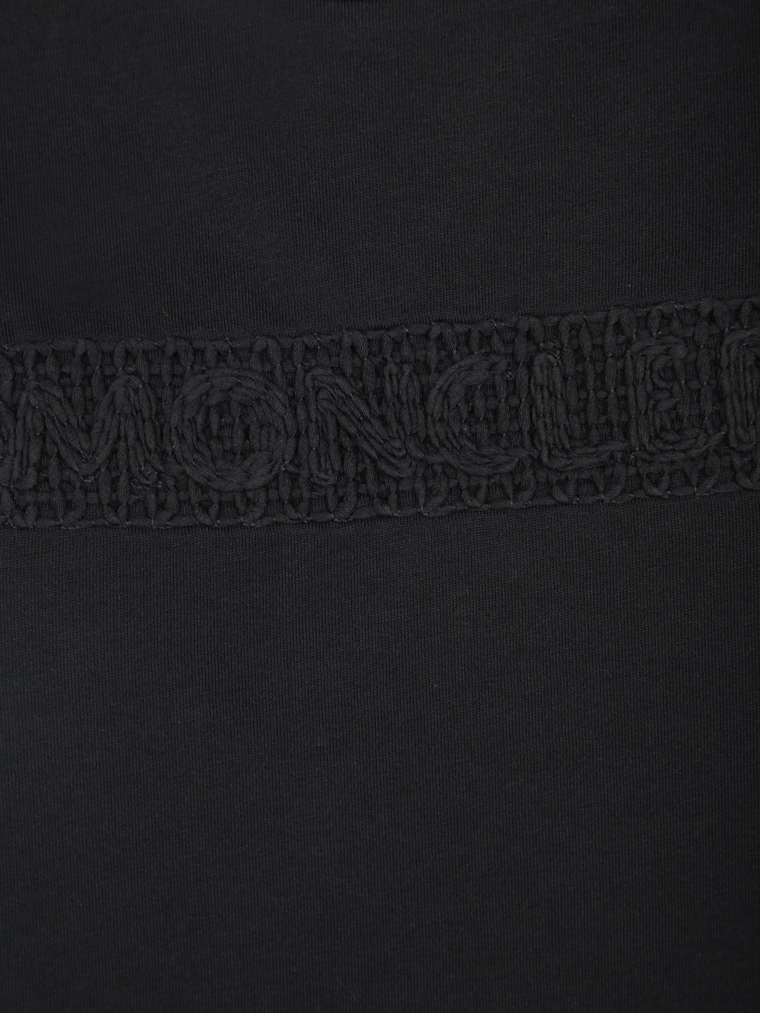 Short sleeves, crew neck, textured Moncler logo at the center.