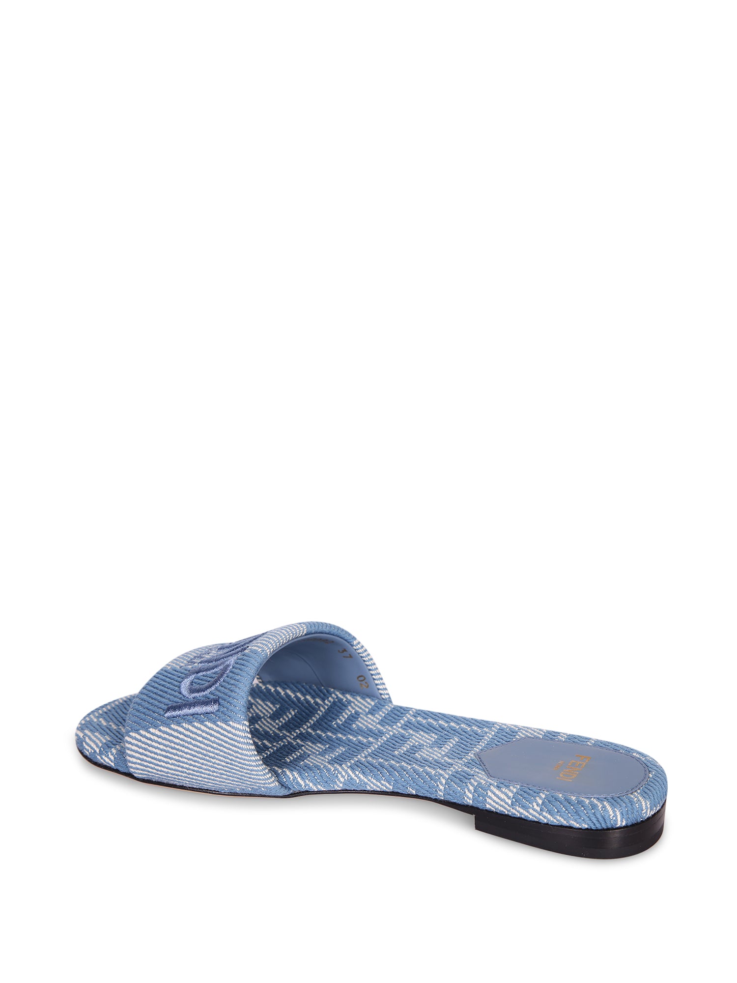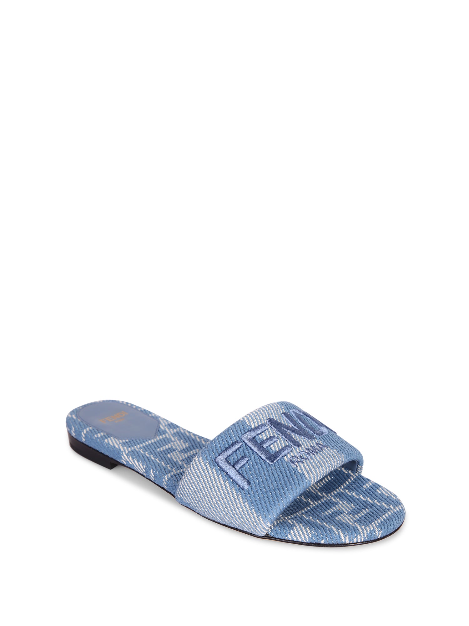Wide logotype denim strap. Padded insole. Rubber outsole.