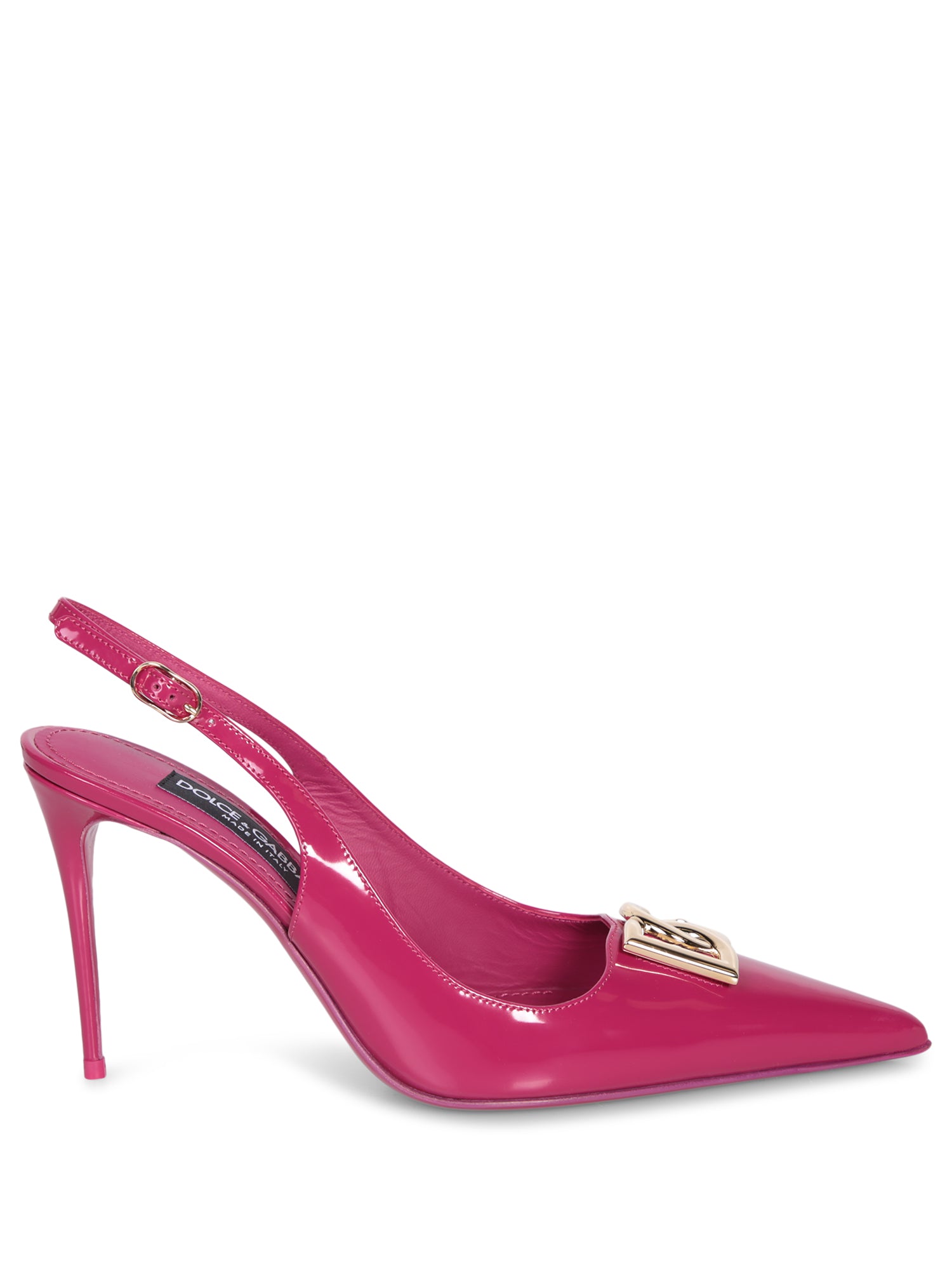 The sling back from the Lollo line, is made of shiny calfskin leather and is personalized with metal DG cut-out logo