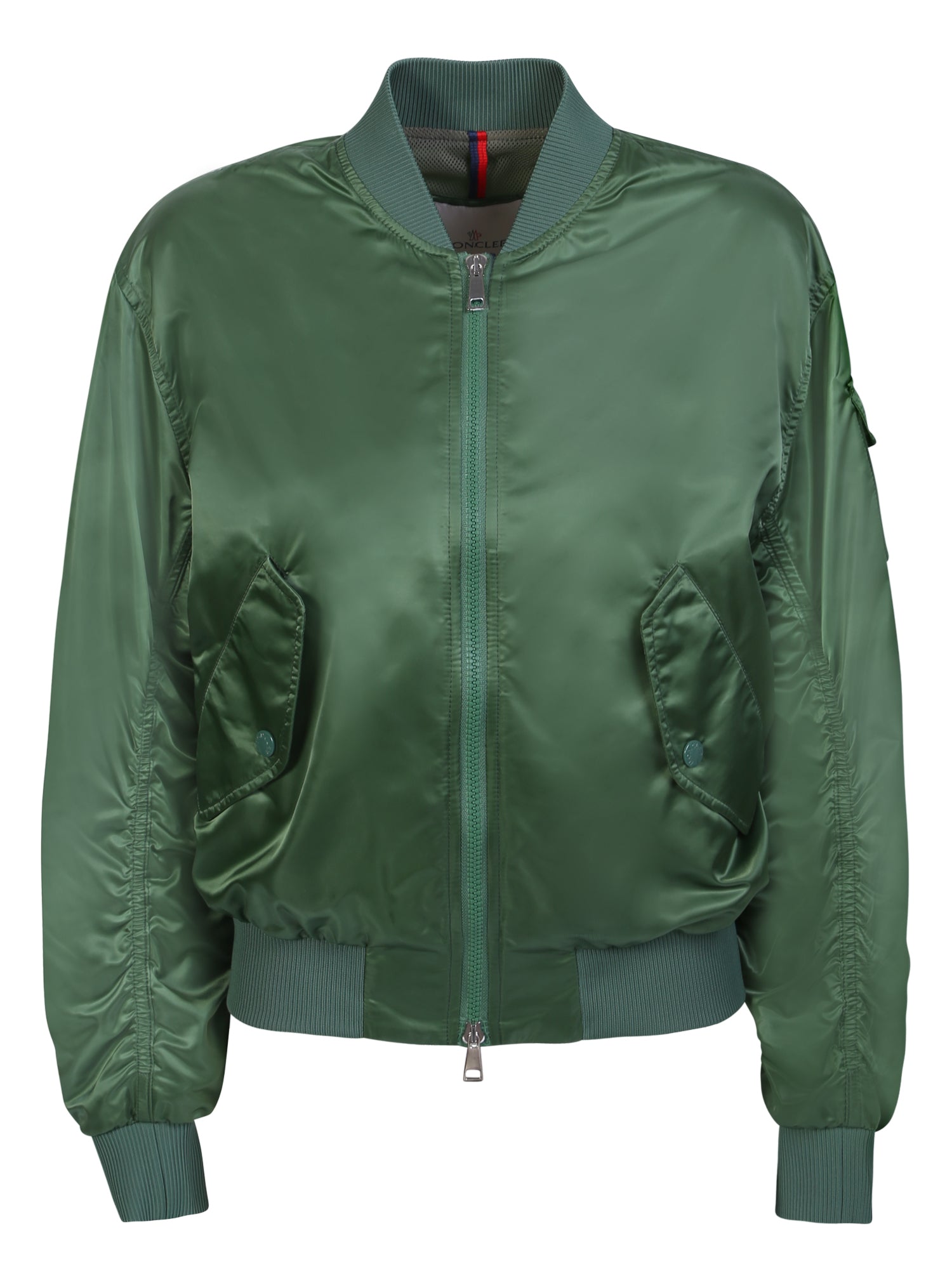 Green bomber jacket from Moncler with a satin finish