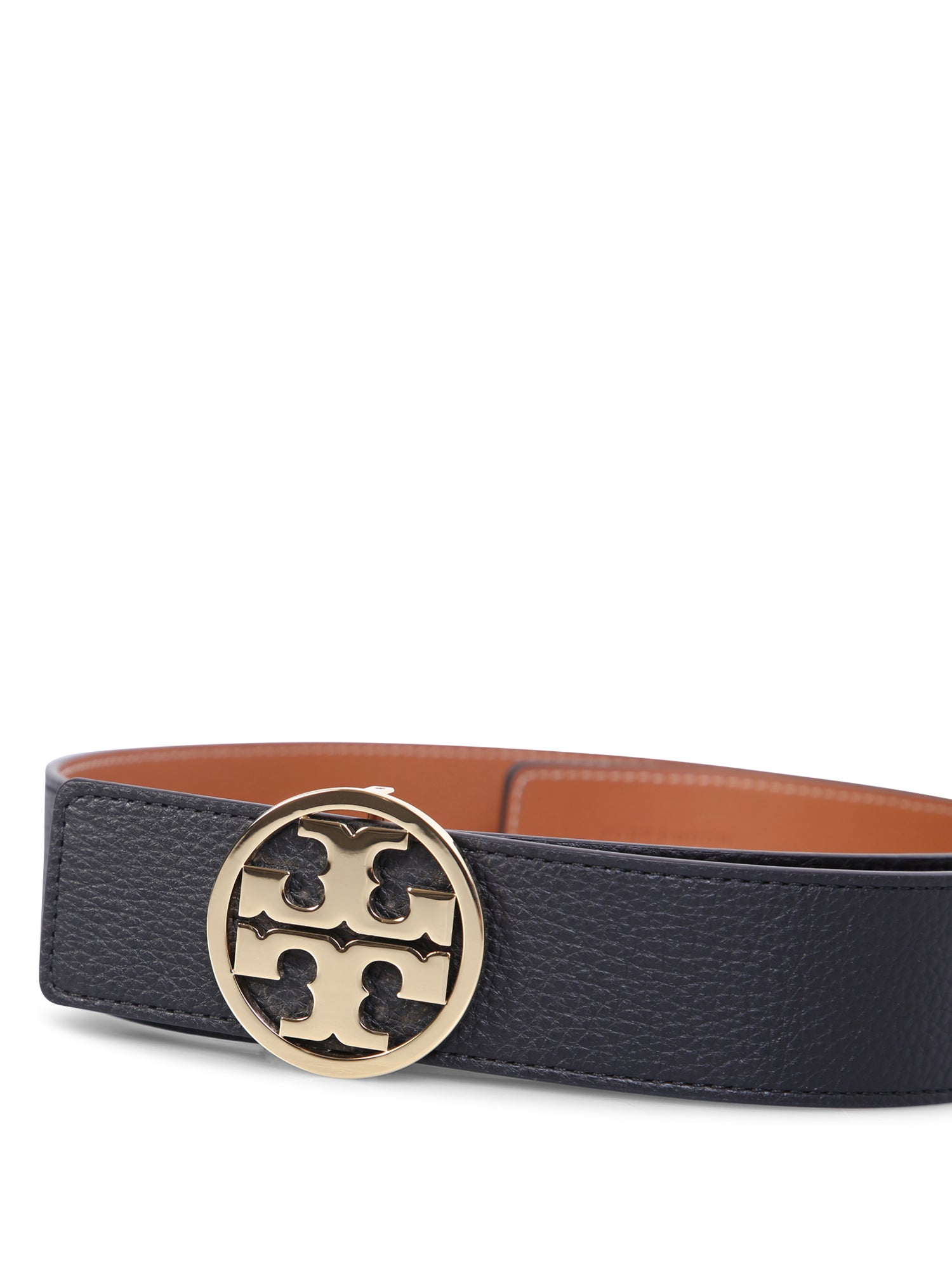 Adjustable fit. Gold-tone hardware. Logo buckle fastening. Punched holes. Color: Black Length 85 cm Width 4 cm