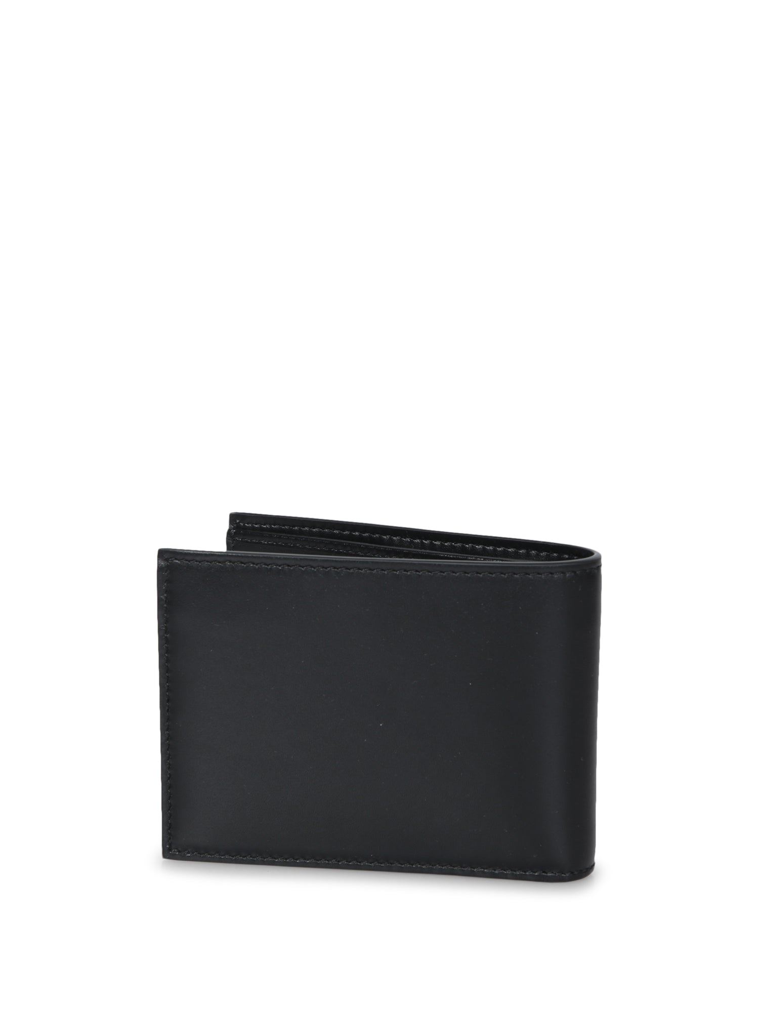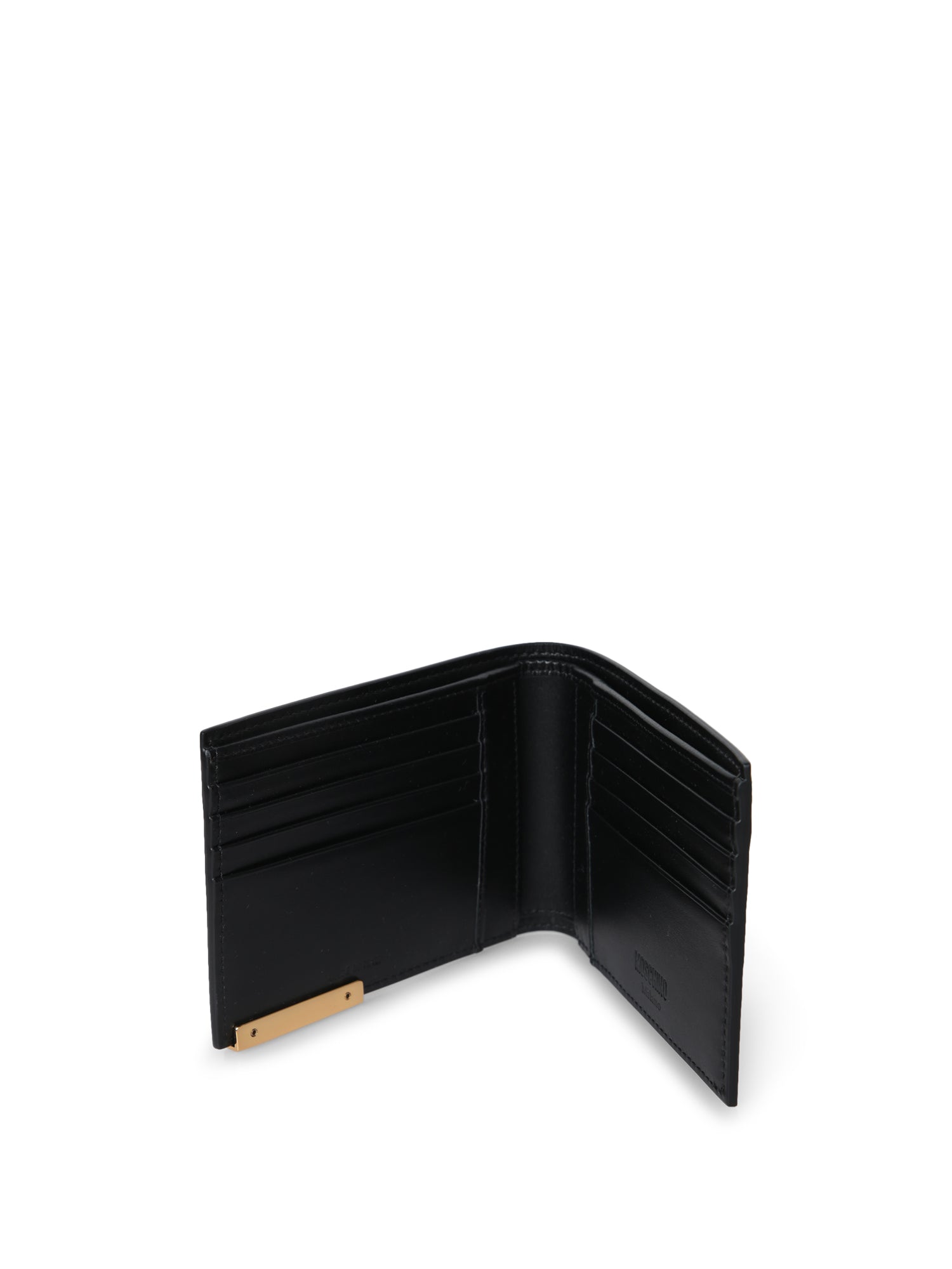 Understated elegance defines this Moschino black leather wallet, enhanced with a golden logo plaque. An essential accessory designed to meld style with functionality.