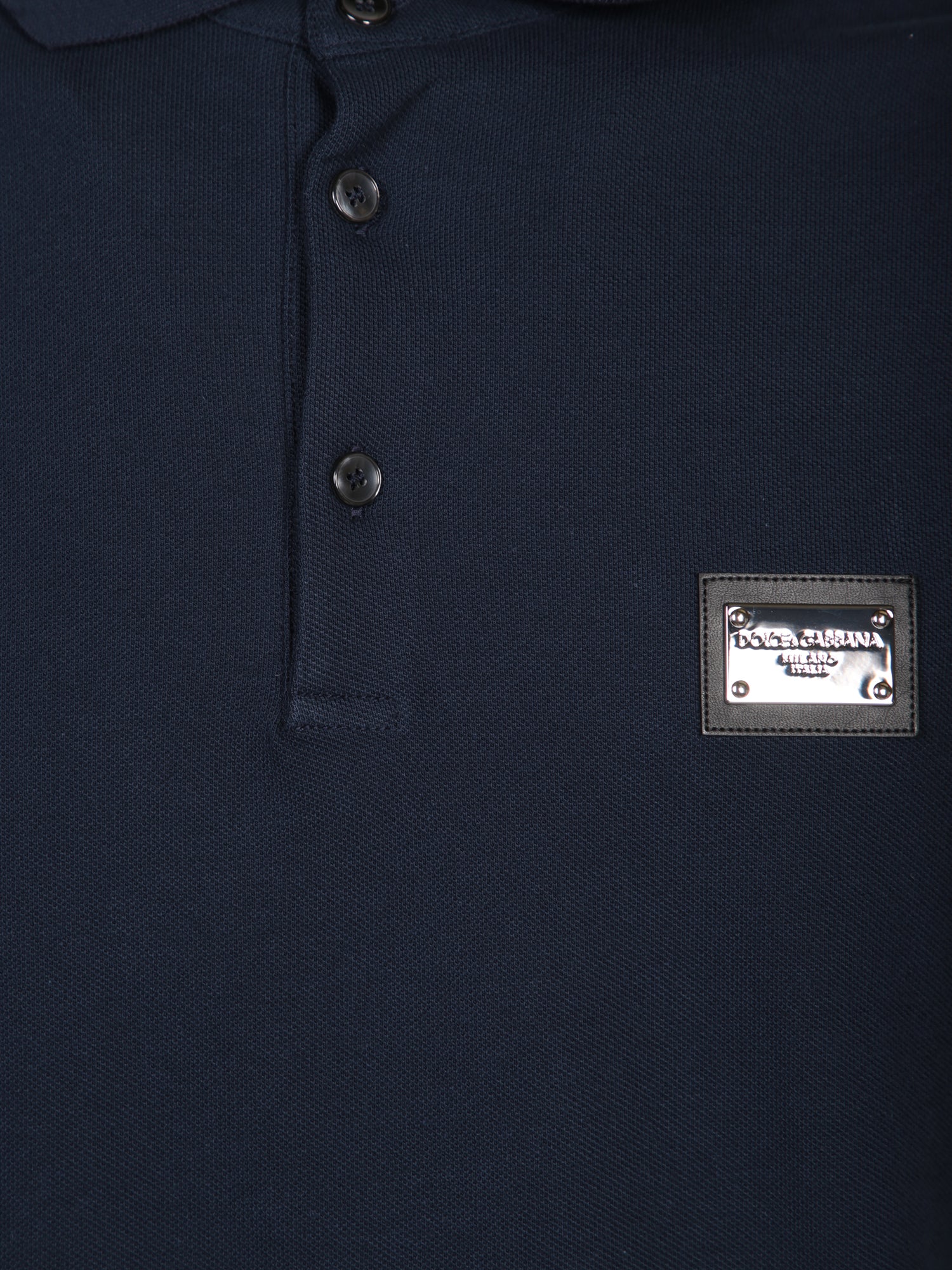 Elegant short-sleeved cotton pique polo shirt with Dolce&Gabbana logo plaque
