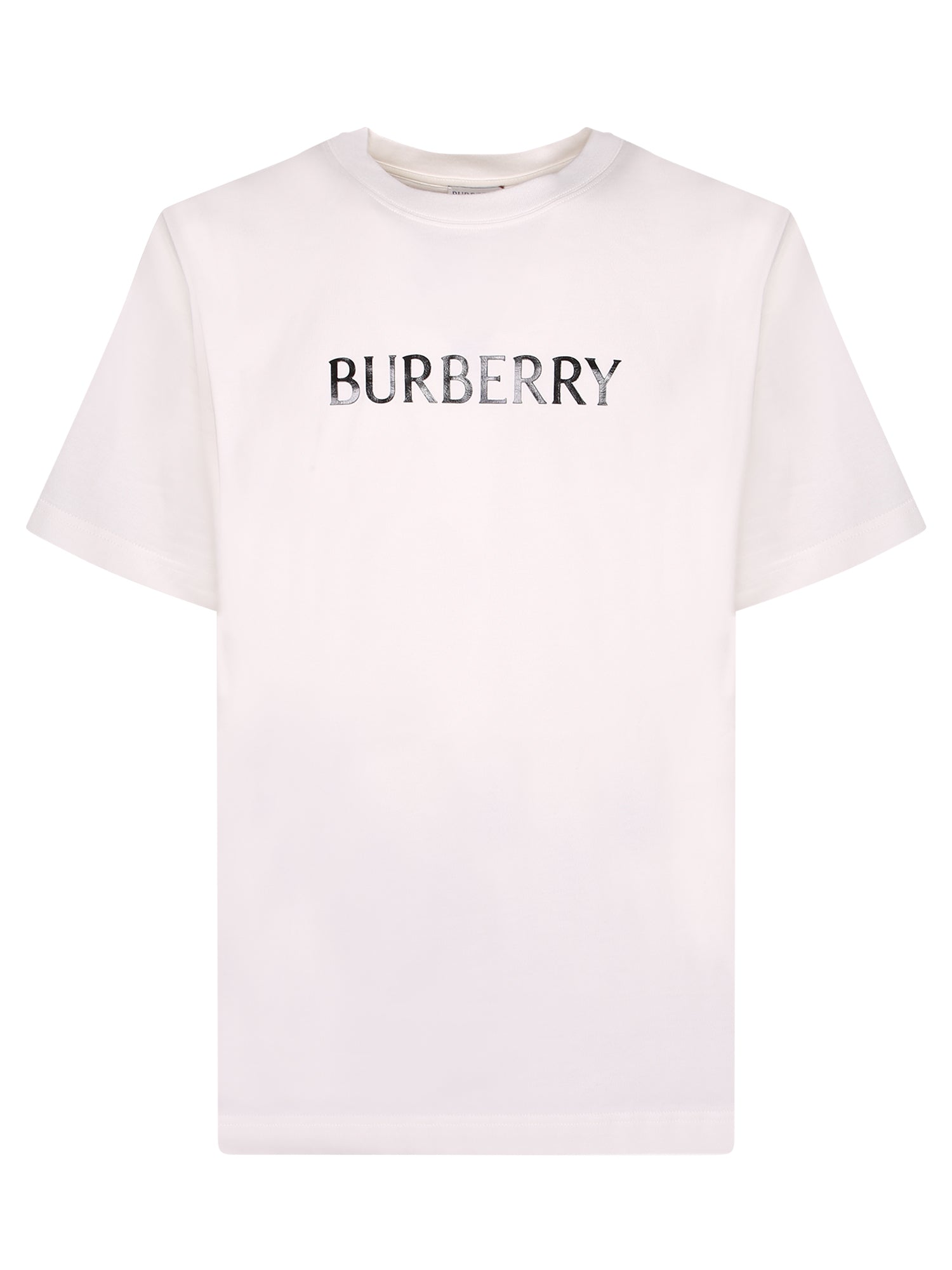 Short sleeve cotton t-shirt. Contrasting Burberry front logo. Crew neck.