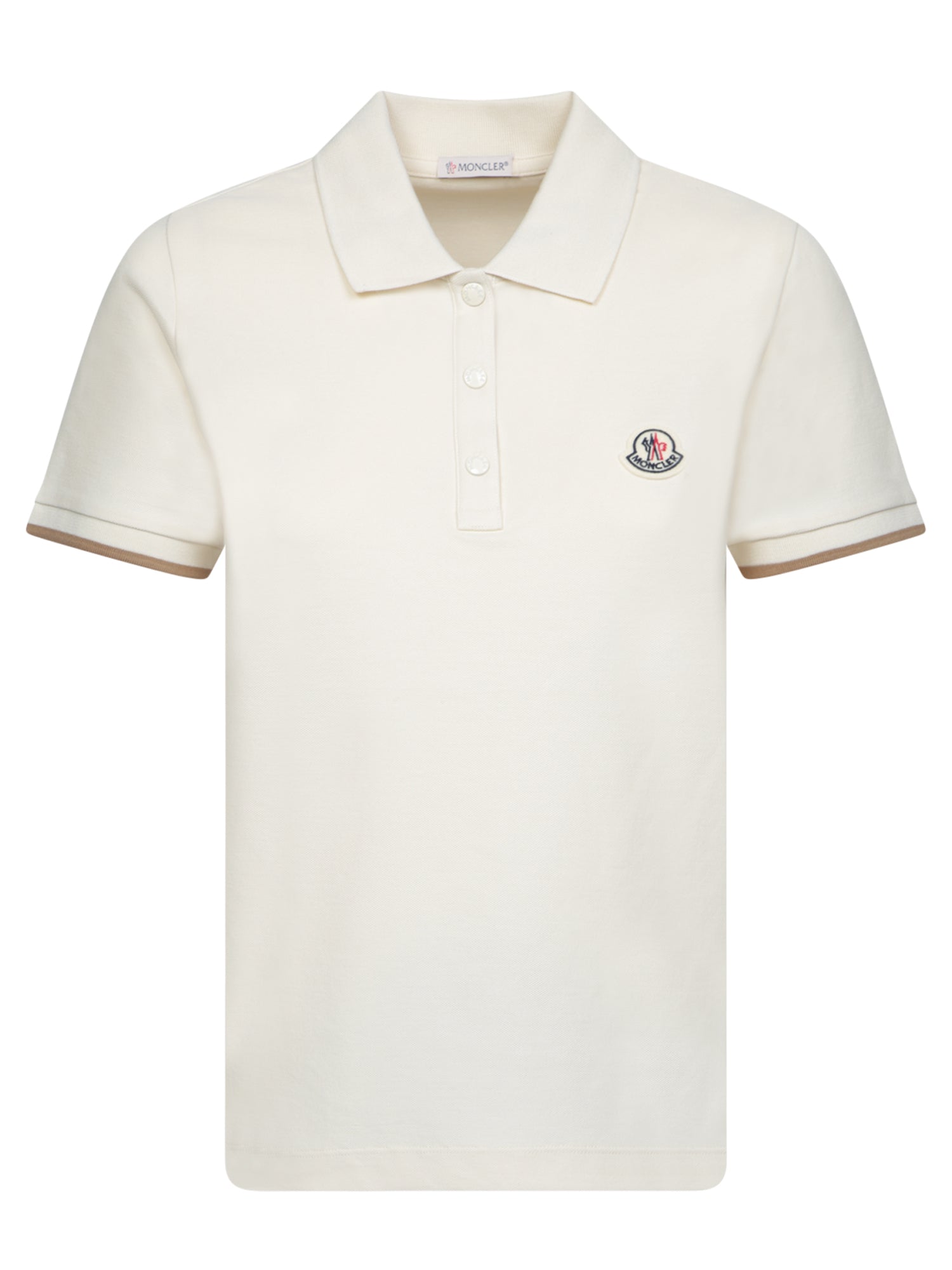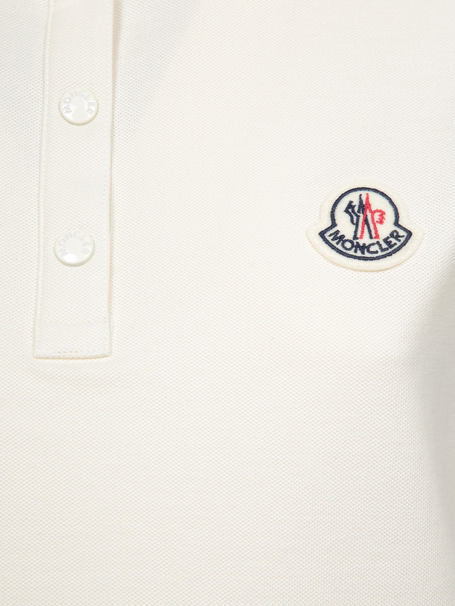 This white Moncler polo merges elegance and comfort, perfect for a casual-chic appearance. Finished with the signature Moncler logo on the chest and contrasting details on the collar and sleeves.