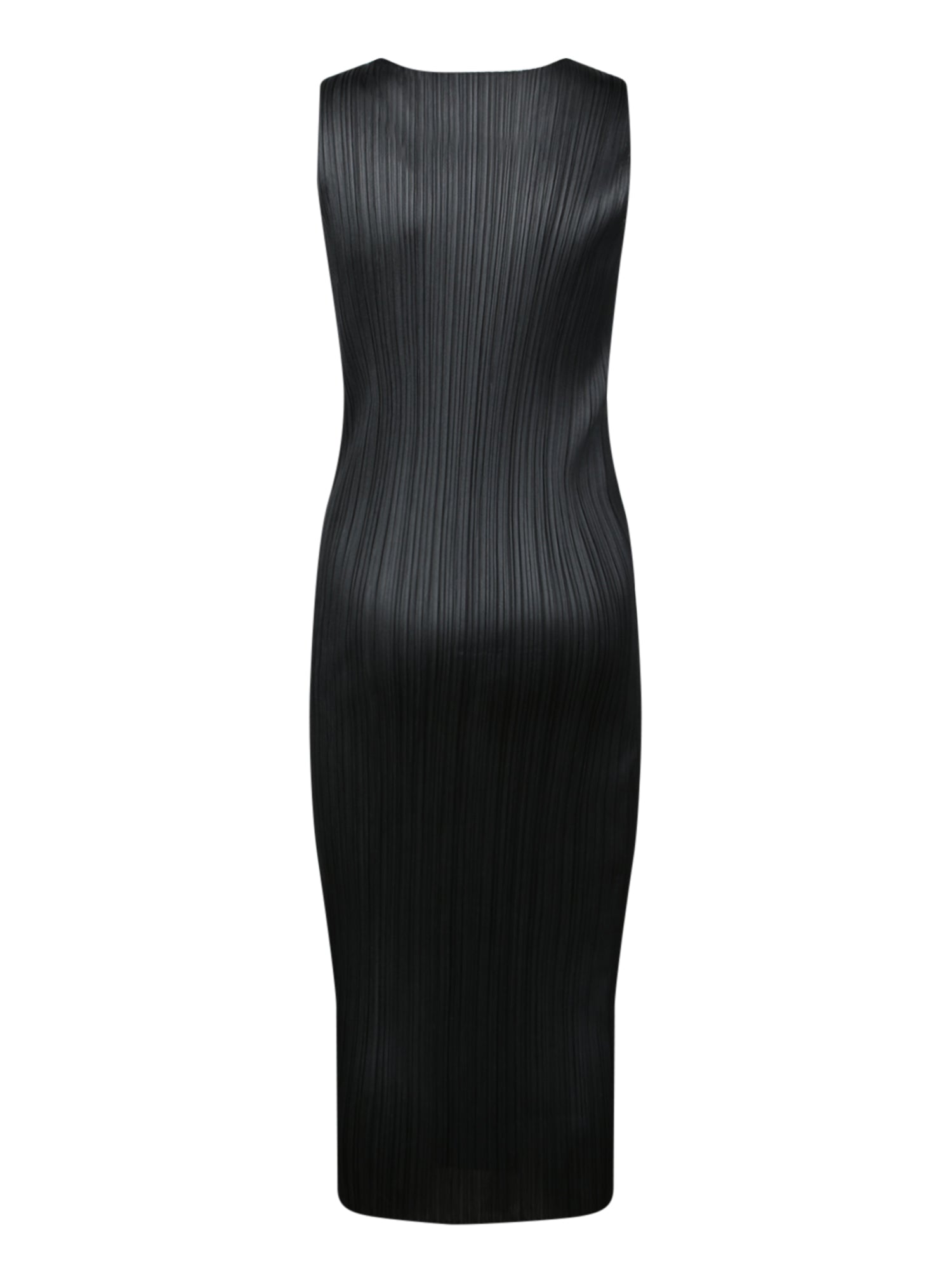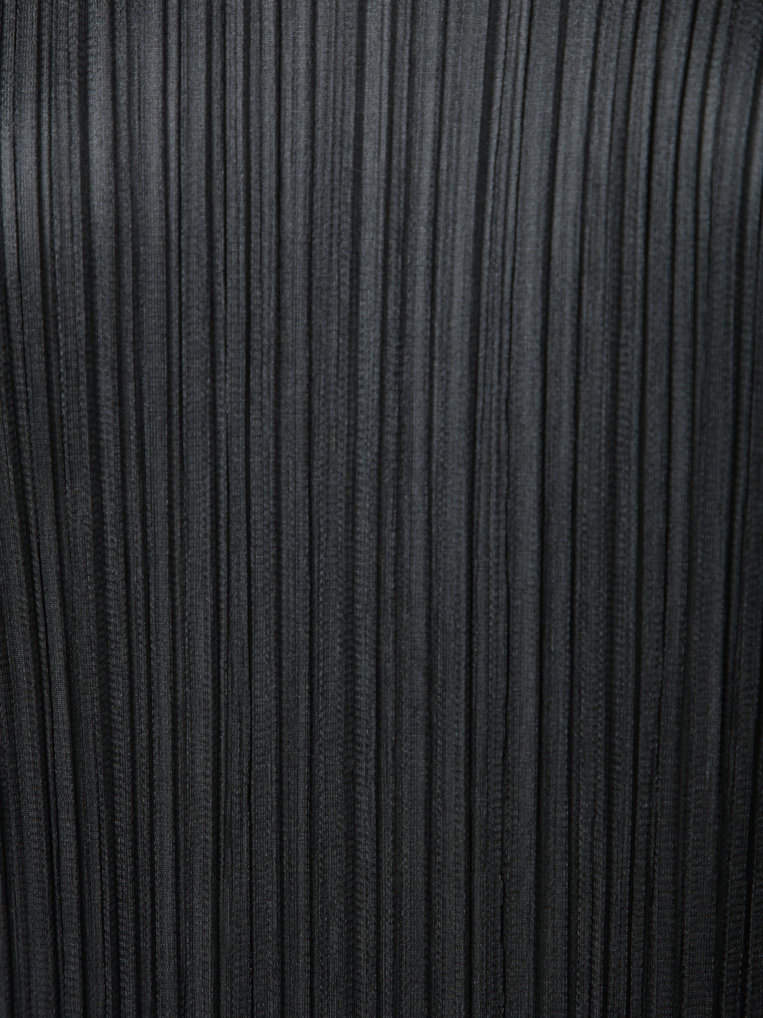 Crafted by the renowned designer Issey Miyake, this pleated black dress defines modern elegance, featuring a design that enhances the silhouette without constriction.