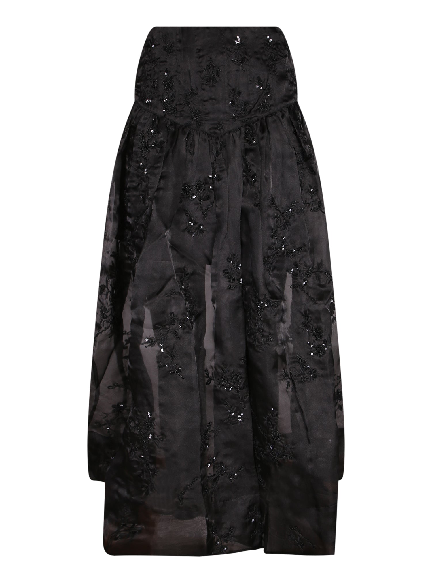 Long Embroidered Organza Skirt Black
