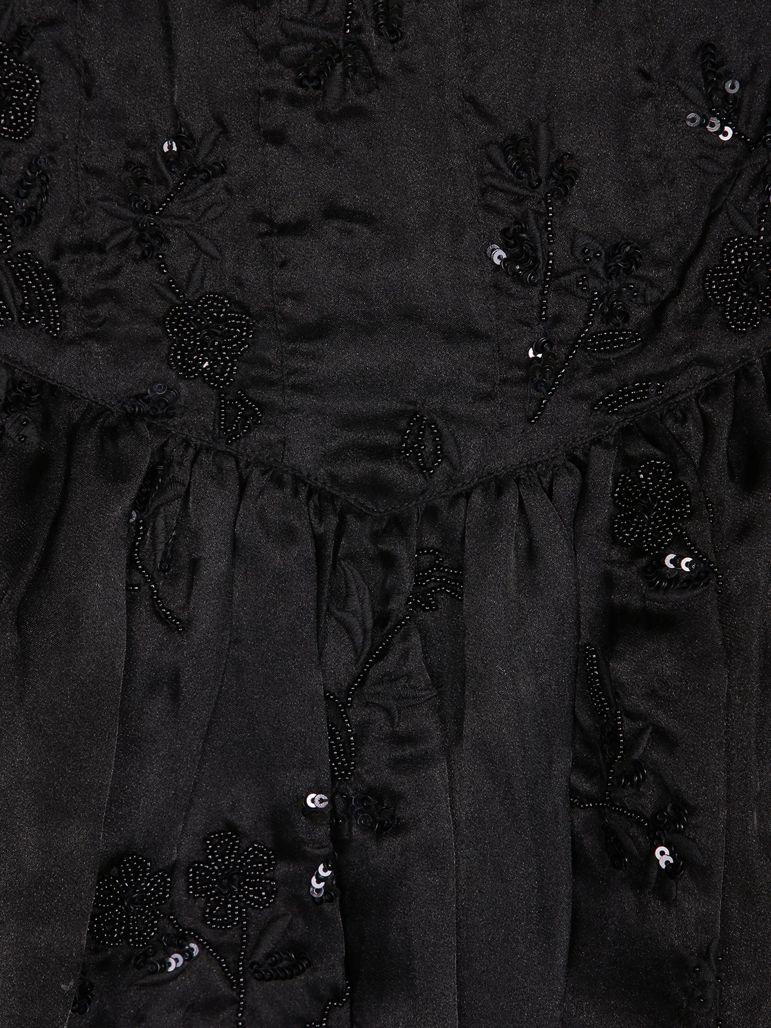 Long organza skirt. Embroidered details with sequins. Elastic waistband.